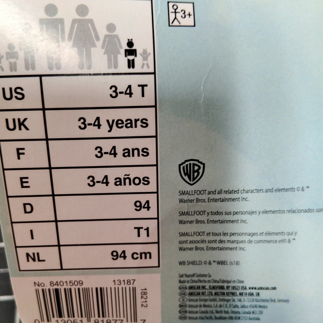 Official Smallfoot Meechee costume for toddler girls. This size 3-4T outfit features colorful character details that bring Meechee to life. Perfect for Halloween, themed parties, cosplay, or everyday dress-up fun. Comfortable and easy to wear. New in original packaging with UPC 013051818777.