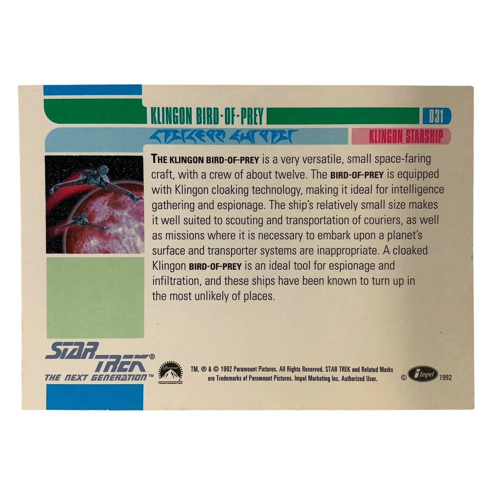 Klingon Bird-Of-Prey, Star Trek, The Next Generation, 1992, Impel Card No.031