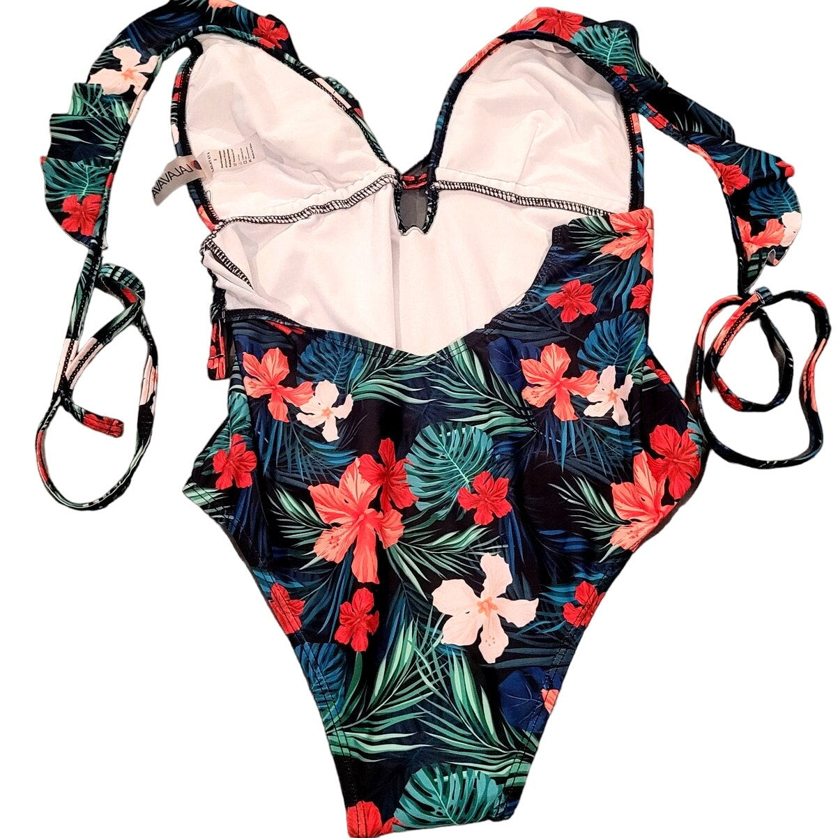 Lalavava One Piece Swimsuit Deep V-Neck Bathing Suit Padded Tropical, SM (4)