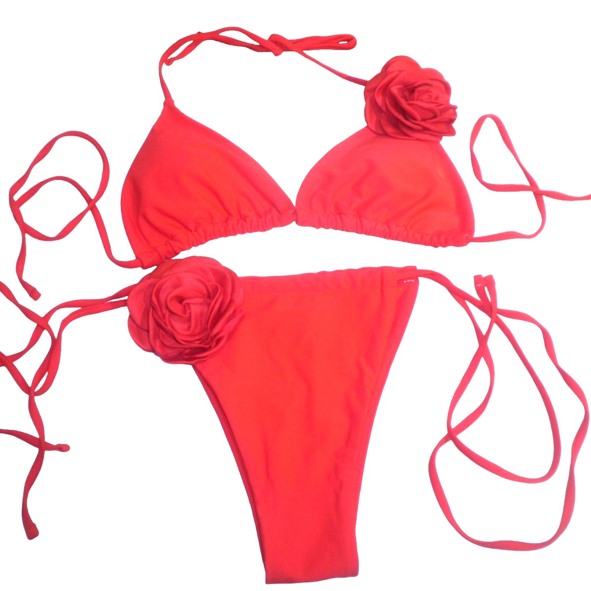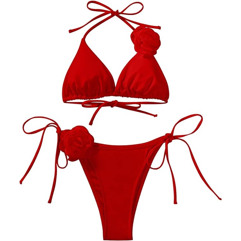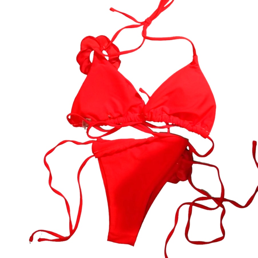 Lilosy Sexy Decorated Cheeky String Triangle Bikini 2 Piece, Medium, Red