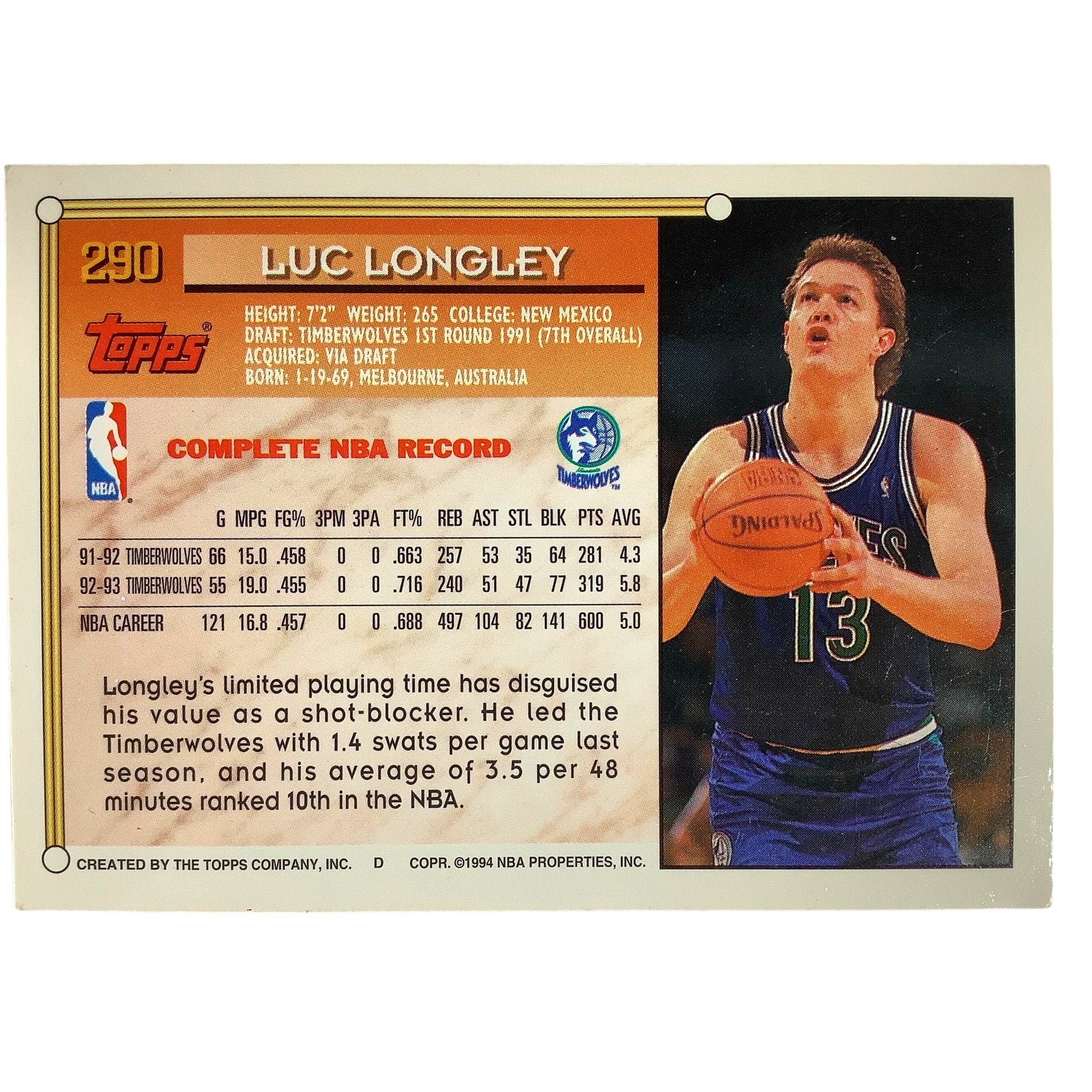 Luc Langley, Minnesota Timberwolves, 1993 Topps Collector's Card 290, EXC