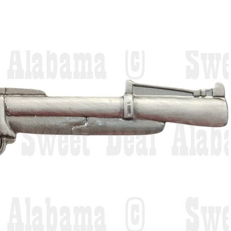 Honor Vietnam-era firepower with this M79 grenade launcher lapel pin—crafted in solid metal with a patinated silver-tone finish and secure butterfly clutch back: