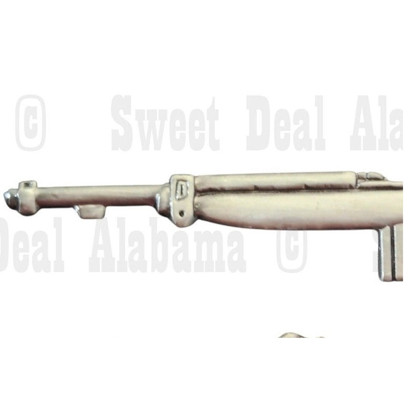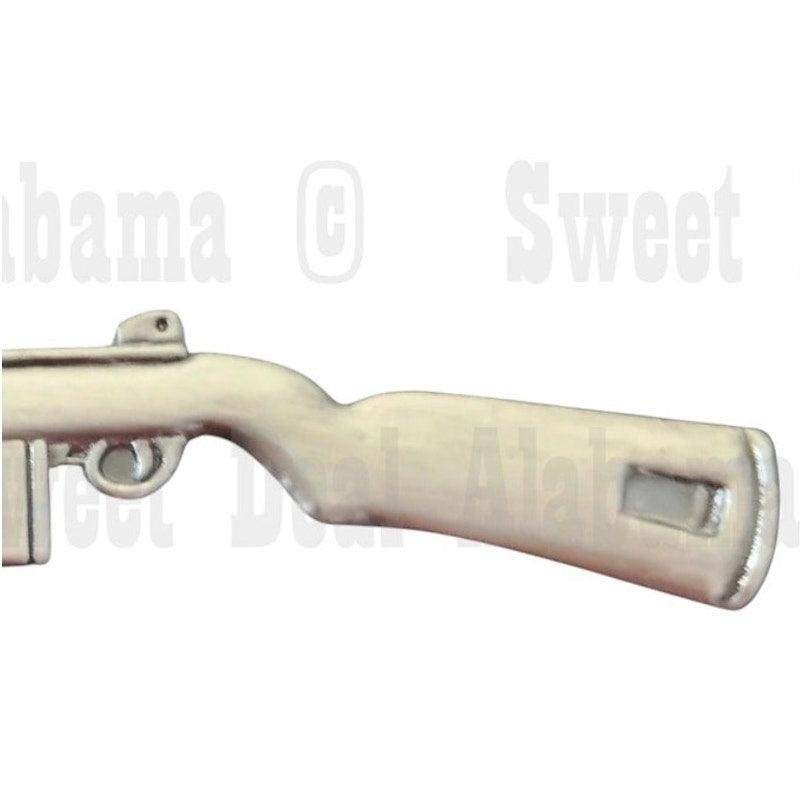 Honor WWII infantry heritage with this M1 Carbine rifle lapel pin—crafted in solid metal with a patinated silver-tone finish and secure butterfly clutch back: