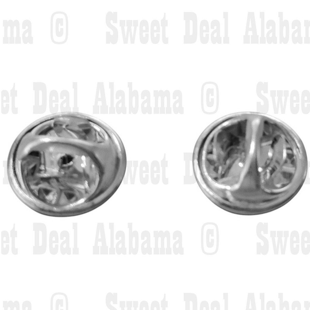 Includes butterfly clutchback(s) for secure fastening. The butterfly clutch is a small, metal clasp that grips the pin’s post, ensuring it stays in place on hats, jackets, or bags. This design allows for easy attachment and removal while keeping the pin firmly secured.
