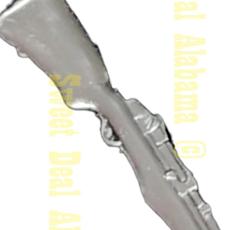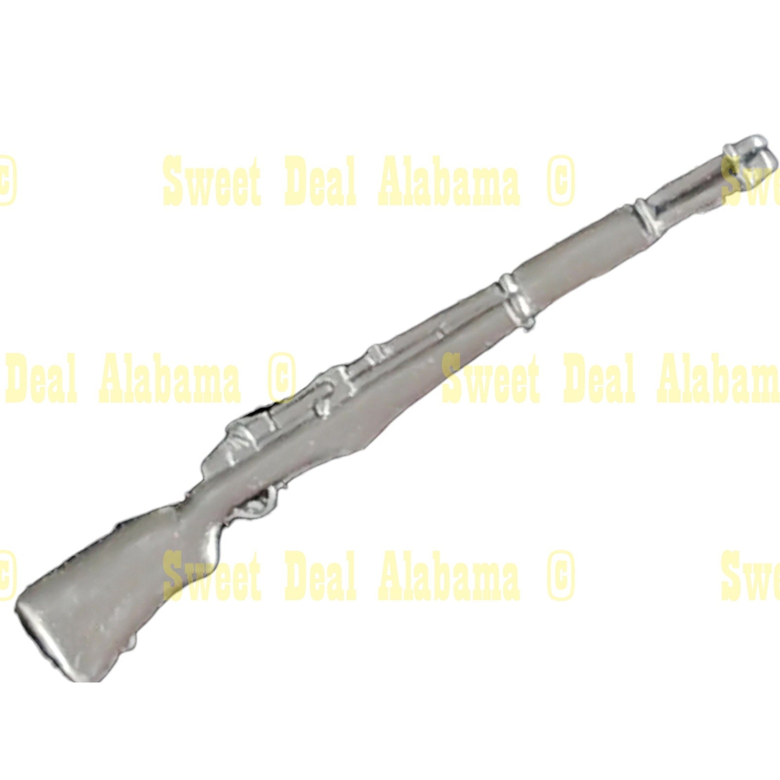 The M1 Garand Rifle Hat, Lapel, or Brooch Collectors Pin is a detailed miniature replica of the iconic M1 Garand rifle, a staple of U.S. military history. Measuring 2-3/8" in length by 1/4" in height, this pin is crafted in a silver-tone finish, making it a striking addition to any collection.