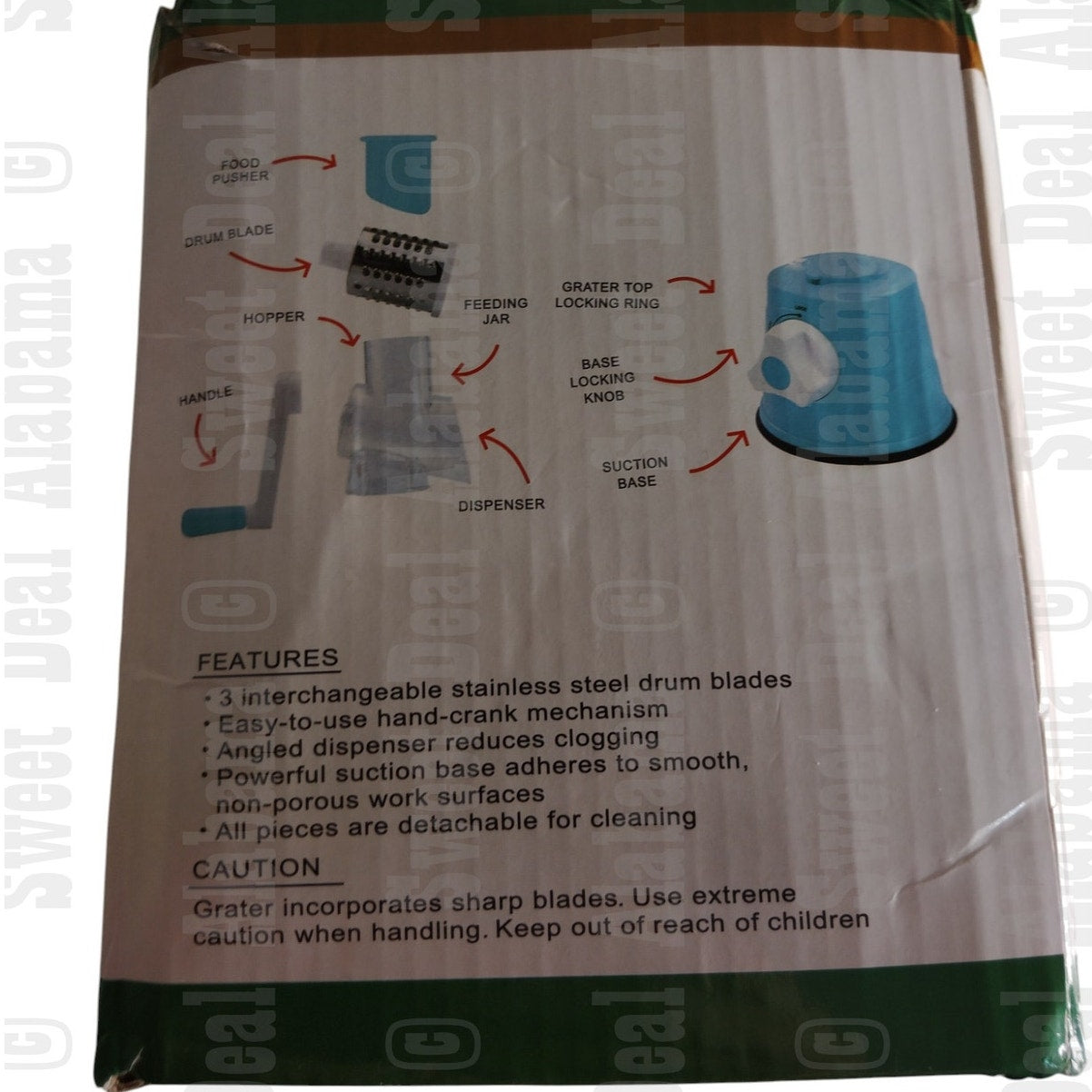 Manual Rotary Cheese Grater, Speed Round Tumbling Box Shredder, Vegetable Slicer