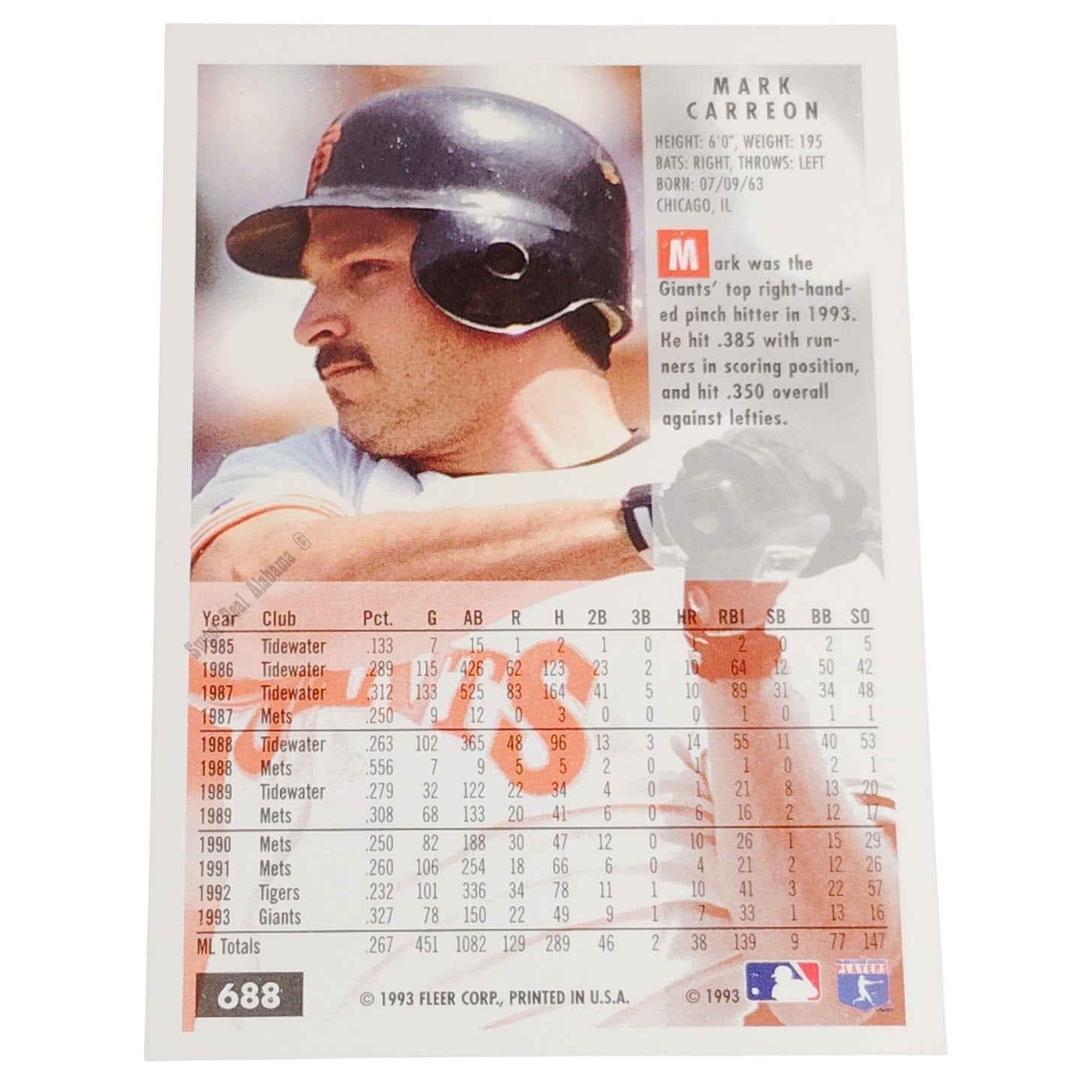 Mark Carreon, San Francisco Giants, #688, 1994 Fleer Baseball Collector's Card