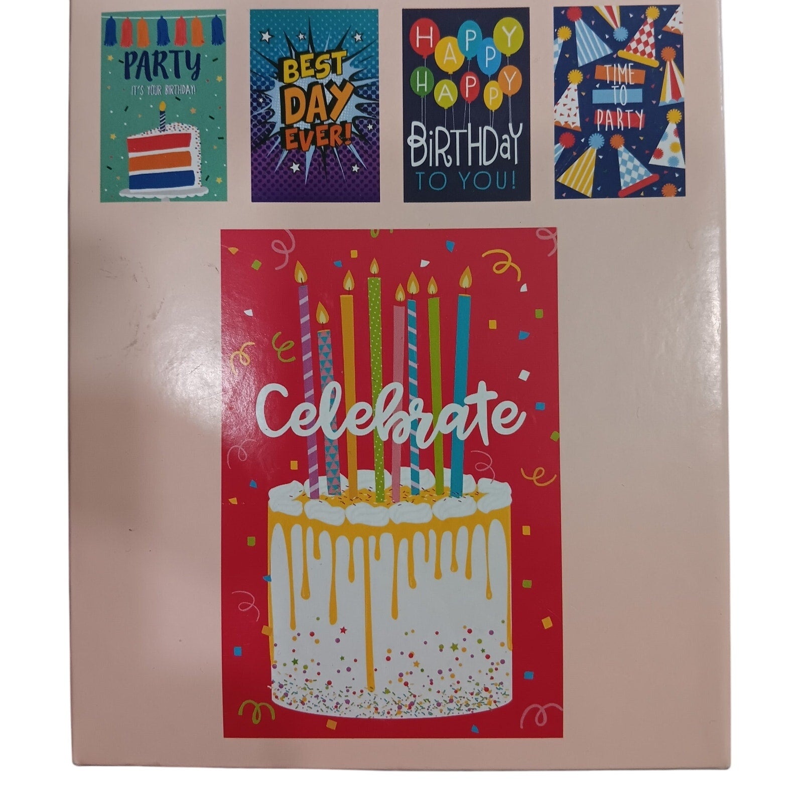 This listing is for a 10-pack of ME Birthday Cards, featuring five unique designs, with two cards of each style. Printed with eco-friendly soy ink, these cards measure 4" x 6" and come packaged as a convenient, ready-to-use set—perfect for any birthday occasion.