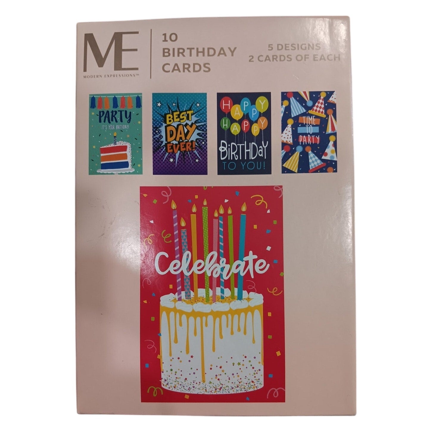 ME Birthday Cards - 10-Pack - 5 Styles x 2 Each - 4"x6" - Soy Ink - PN 619934