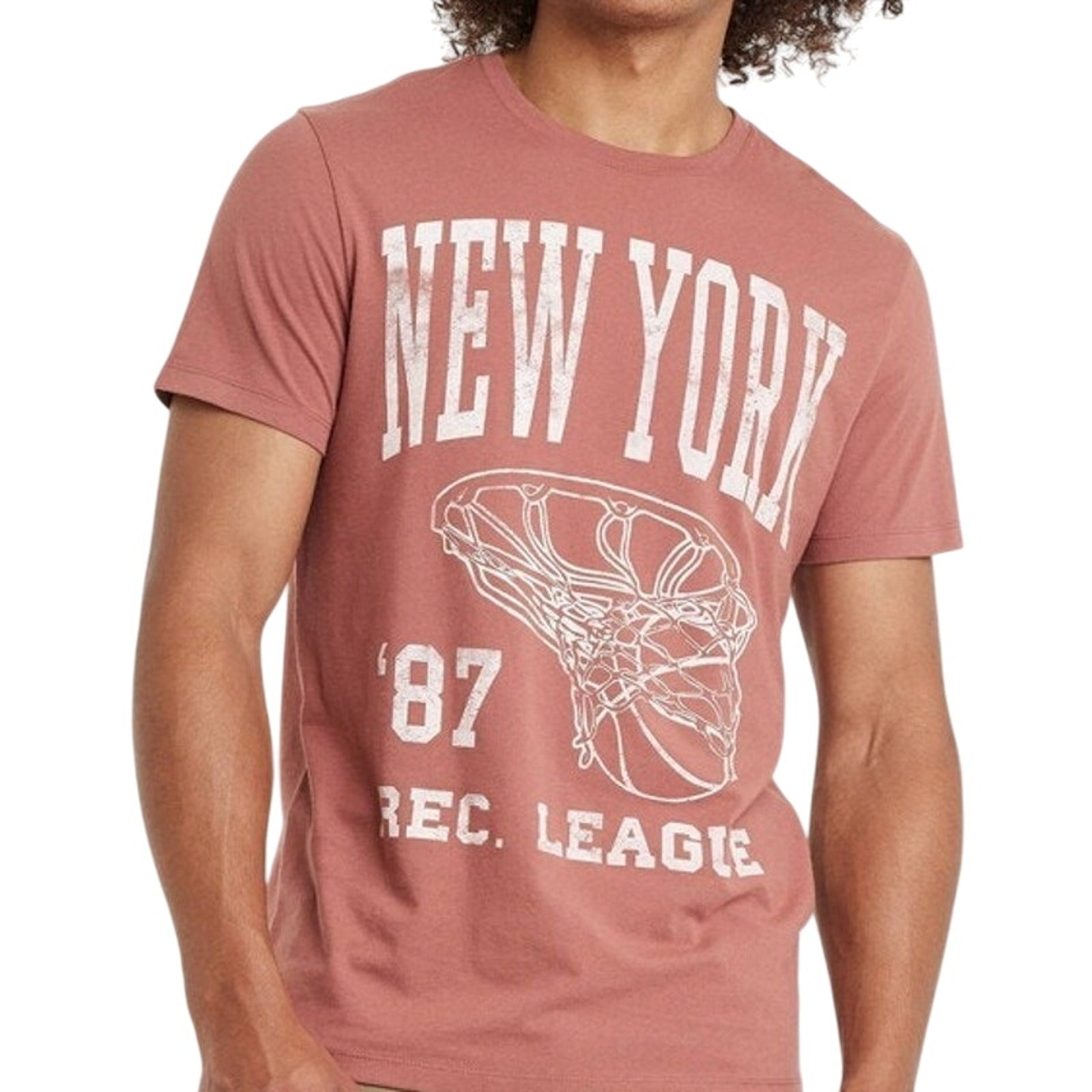 The Men's Short Sleeve Crewneck Graphic T-Shirt from Goodfellow & Co in Cinnamon, size Small, is a stylish and comfortable addition to your wardrobe.