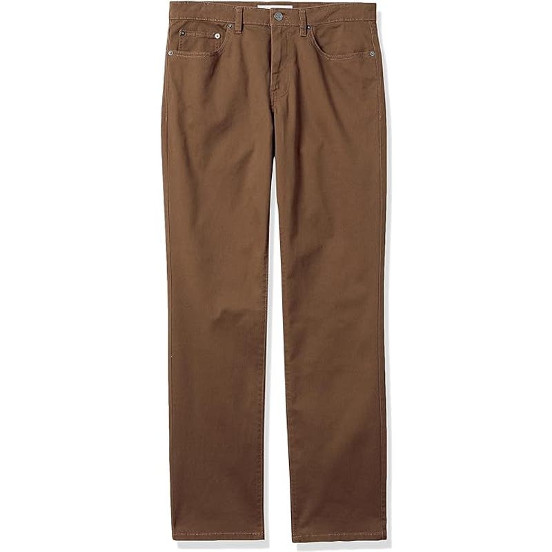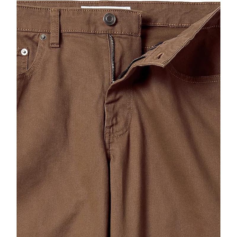 Mens Straight-Fit 5-Pocket Stretch Twill Pant, Brown, 34W x 28L, Cotton/Spandex