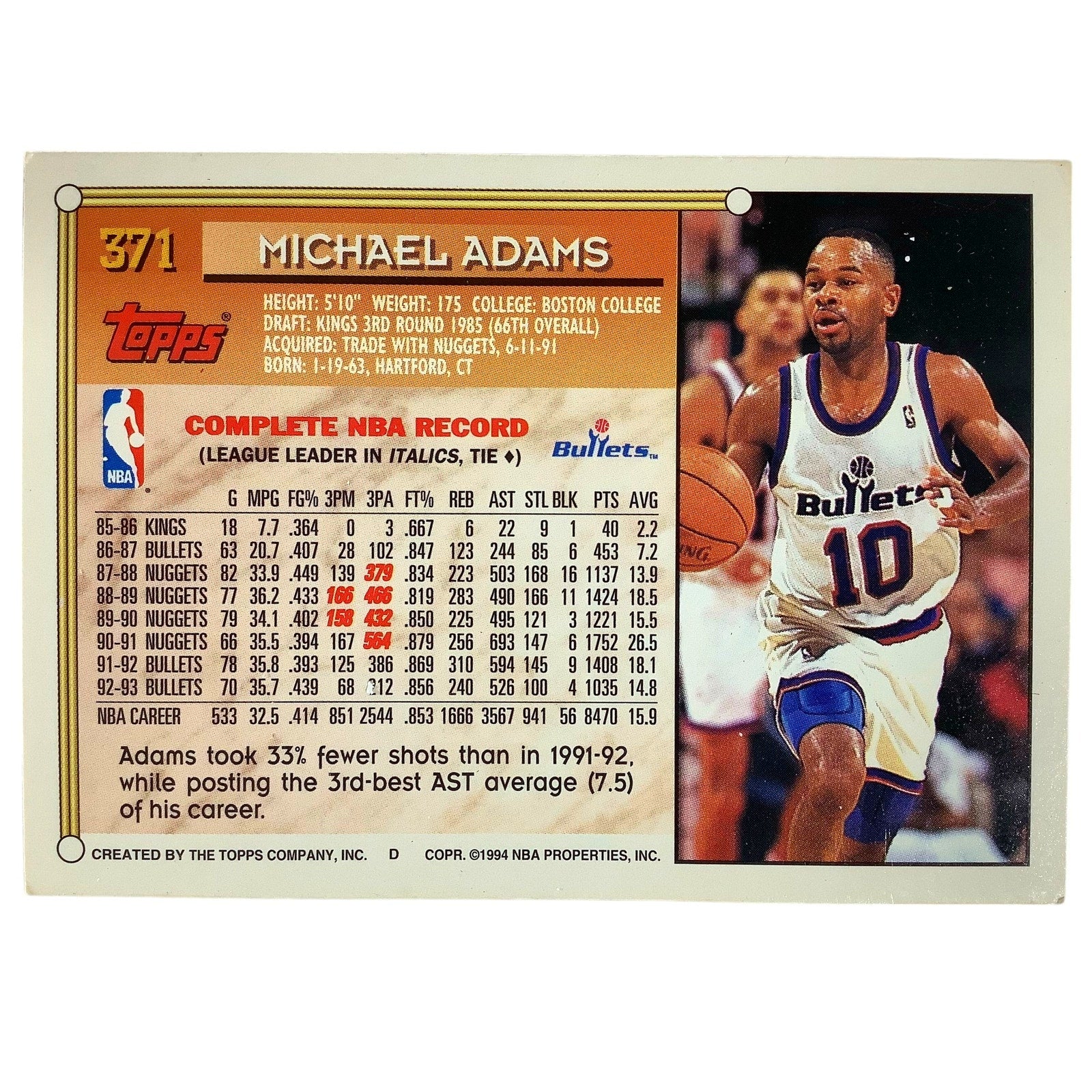 Michael Adams, Washington Bullets, 1993 Topps Collector's Card 371, EXC