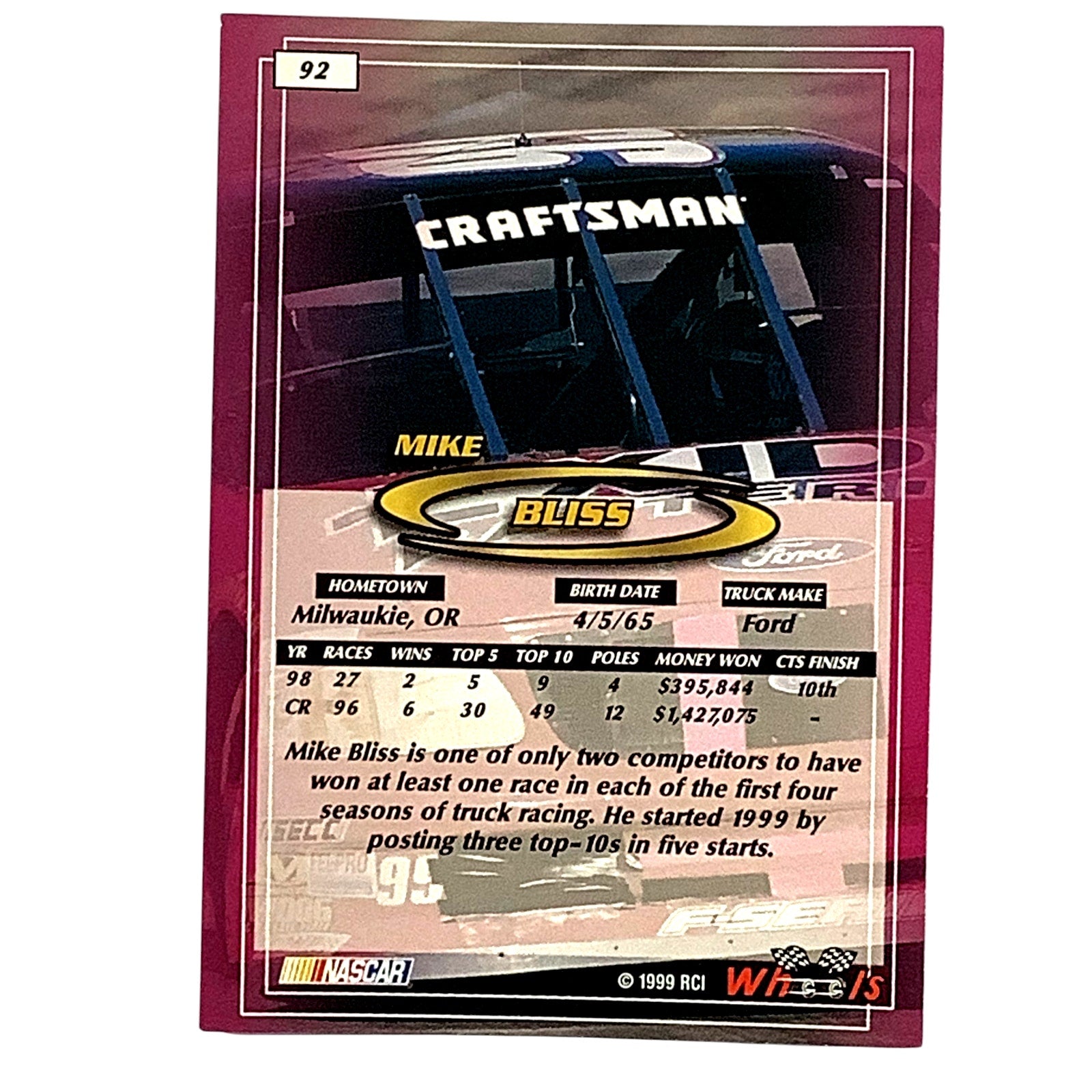 Mike Bliss #99 Exide Batteries, 1999 Wheels #92 NASCAR Craftsman Truck Series