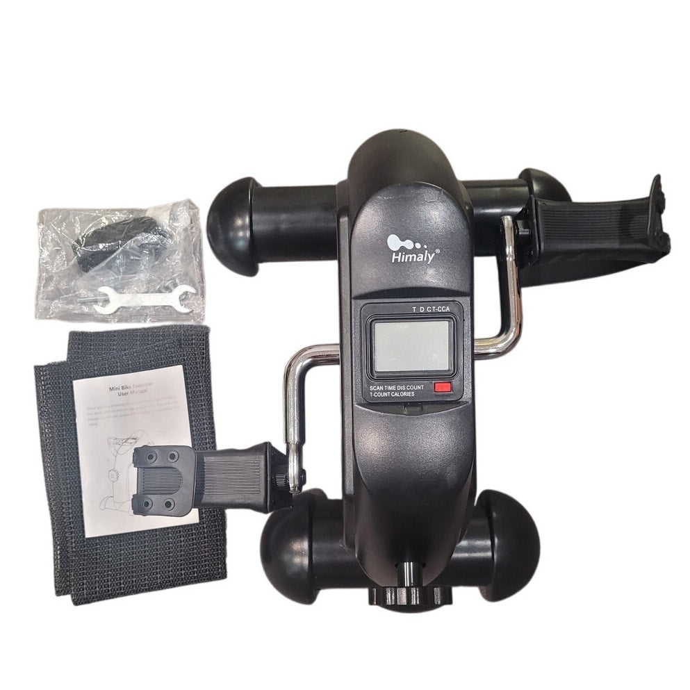 The Himaly Under Desk Mini Exercise Bike is a compact and portable pedal exerciser for arms and legs. Great for home or office low-impact workouts, it has an LCD screen that tracks time, distance, count, and calories burned.