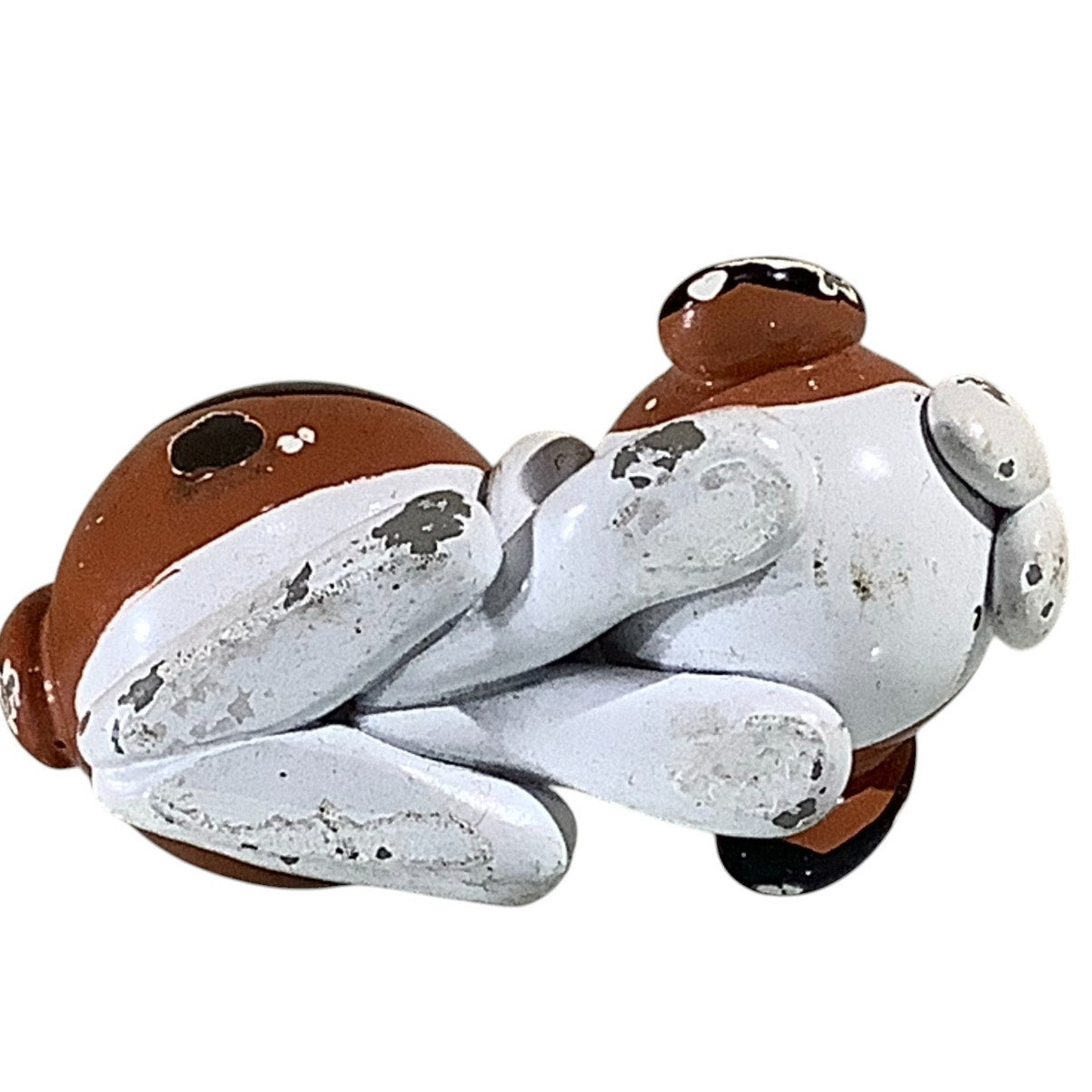 Unique beagle made with glass marbles and clay. Details are painted with gloss enamels.