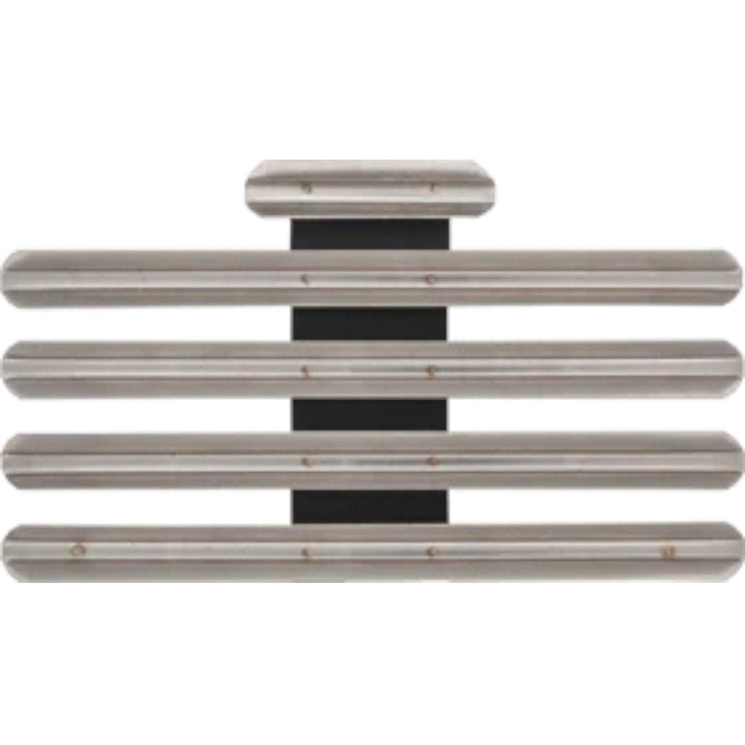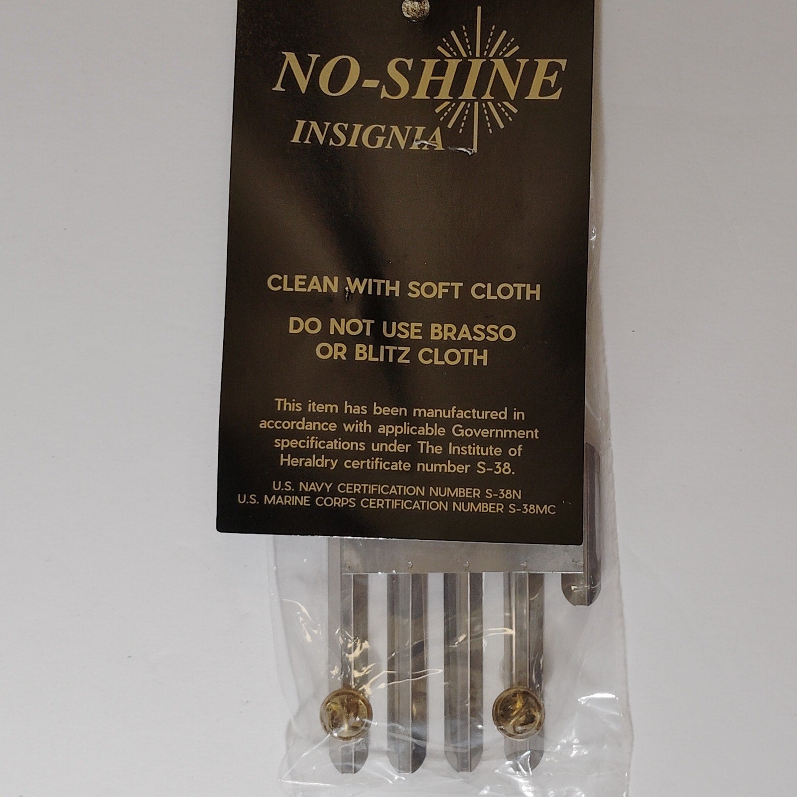 Mounting rack bar designed to hold 13 military ribbons in a 3/3/3/3/1 configuration, with the top ribbon centered and a 1/8" vertical gap between rows for enhanced visibility and separation. Manufactured under the No-Shine Insignia brand, previously distributed by The Supply Room. Features a polished, non-reflective silver finish suitable for dress uniform wear. Includes clutch backs for secure attachment. Compatible with standard U.S. military ribbon sizes and follows official precedence layout standards. Ideal for high-award service members requiring full rack display with precise alignment.