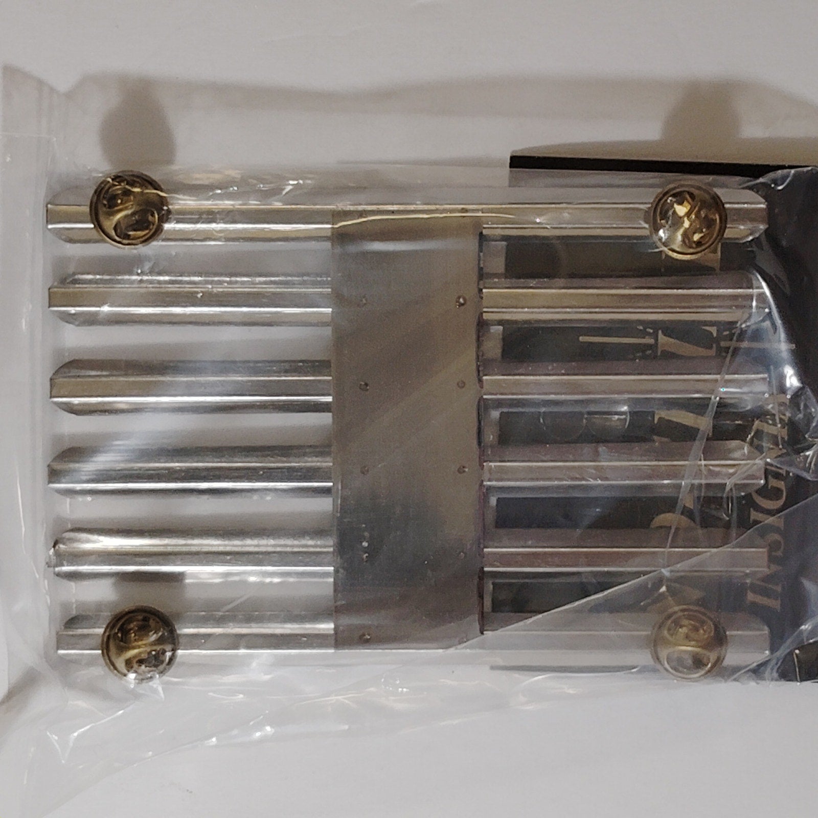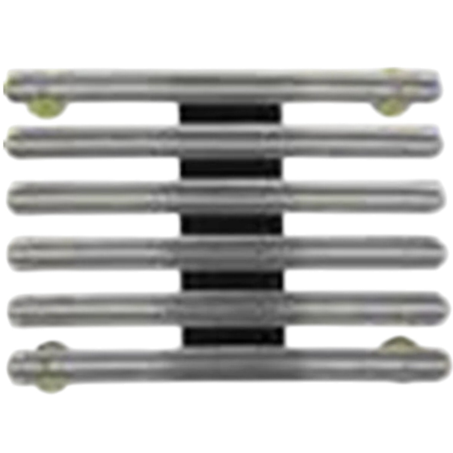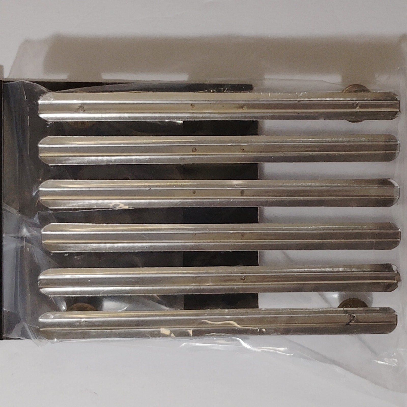 Silver metal rack bar holds 18 military ribbons in a six-row layout of 3 ribbons per row with uniform 1/8" vertical gaps for structured display. Designed for dress uniform presentation with flush stacking and centered alignment. Made by No-Shine Insignia, formerly distributed by The Supply Room. Matte, non-reflective finish suitable for ceremonial wear. Includes clutch backs. Compatible with standard U.S. ribbon sizes and layout standards. Ideal for mid-capacity rack display with balanced row structure. Material: silver-tone anodized metal. Condition: new. Origin: USA. Government spec compliant.