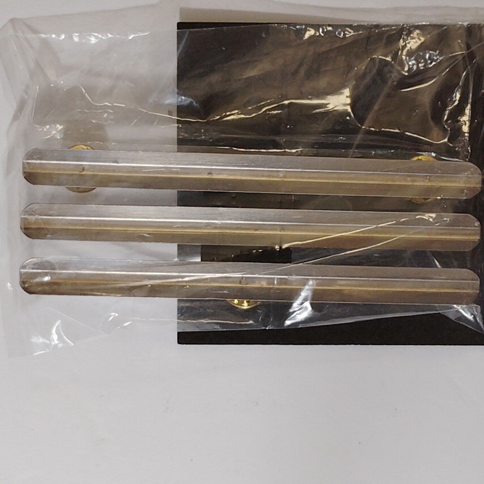 Silver metal mounting rack bar designed to hold 9 military ribbons in a 3/3/3 configuration, with the top row centered and a 1/8" vertical gap between rows for enhanced visibility and separation. Manufactured under the No-Shine Insignia brand, previously distributed by The Supply Room. Features a polished, non-reflective silver finish suitable for dress uniform wear. Includes clutch backs for secure attachment. Compatible with standard U.S. military ribbon sizes and follows official precedence layout standards.