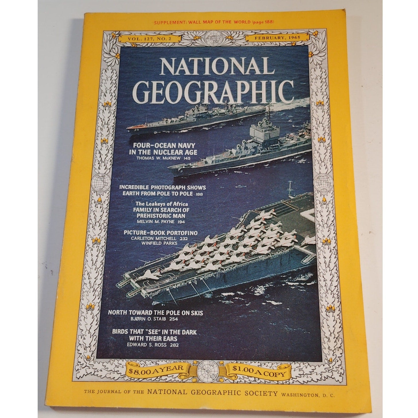 National Geographic Feb 1965, Navy Nuclear Age, Leakeys Oilbirds Arctic Ski Trek