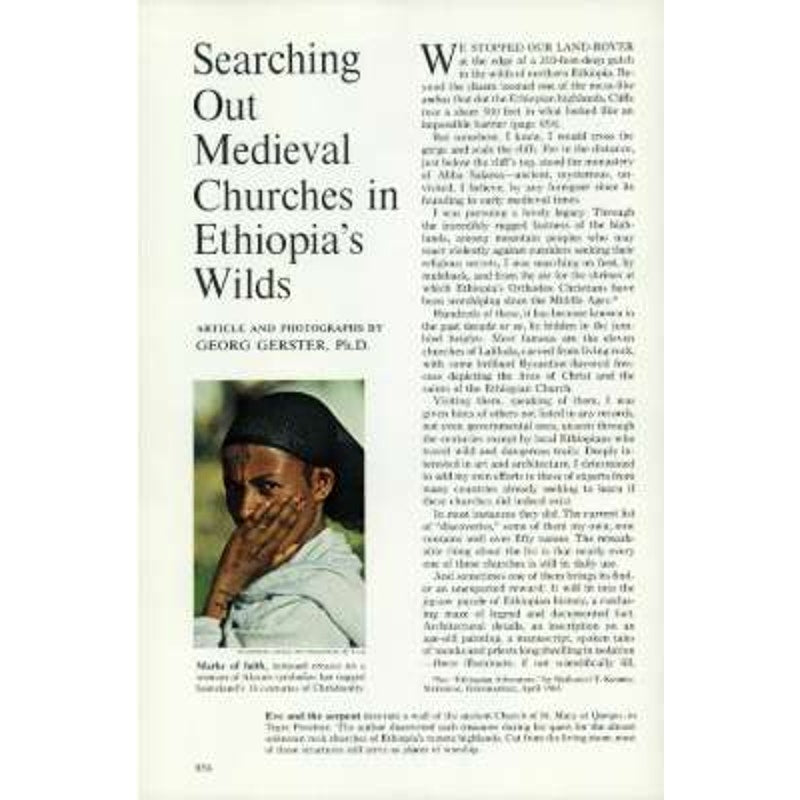 The author discovers wall paintings of biblical scenes in rock churches of Ethiopia’s highlands, some unknown to the outside world. Orthodox Christians have been worshipping in these shrines since the Middle Ages.