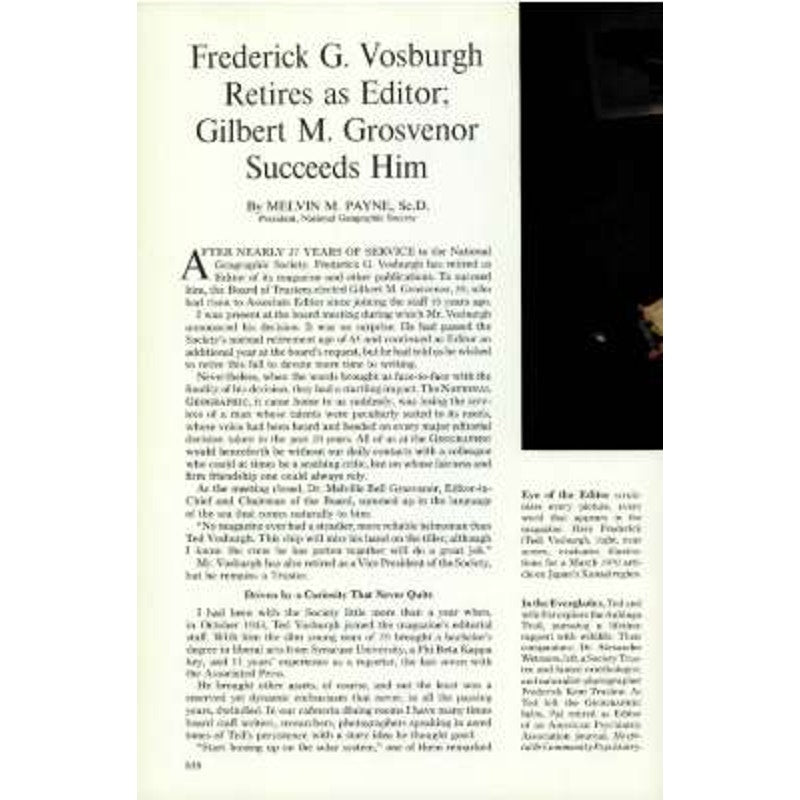 Frederick G. Vosburgh Retires as Editor; Gilbert M. Grosvenor Succeeds Him