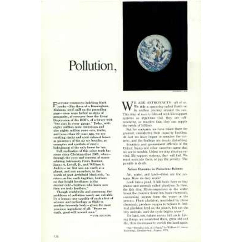 Our Ecological Crisis { Pollution, Threat to Man’s Only Home}
