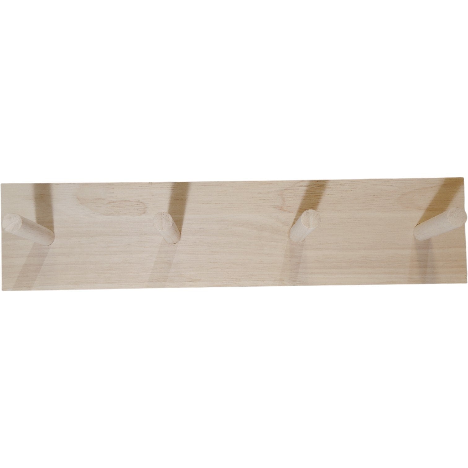 Natural Wood Wall-Mounted Coat Rack – 4 Pegs – 13" x 3" x 3"
