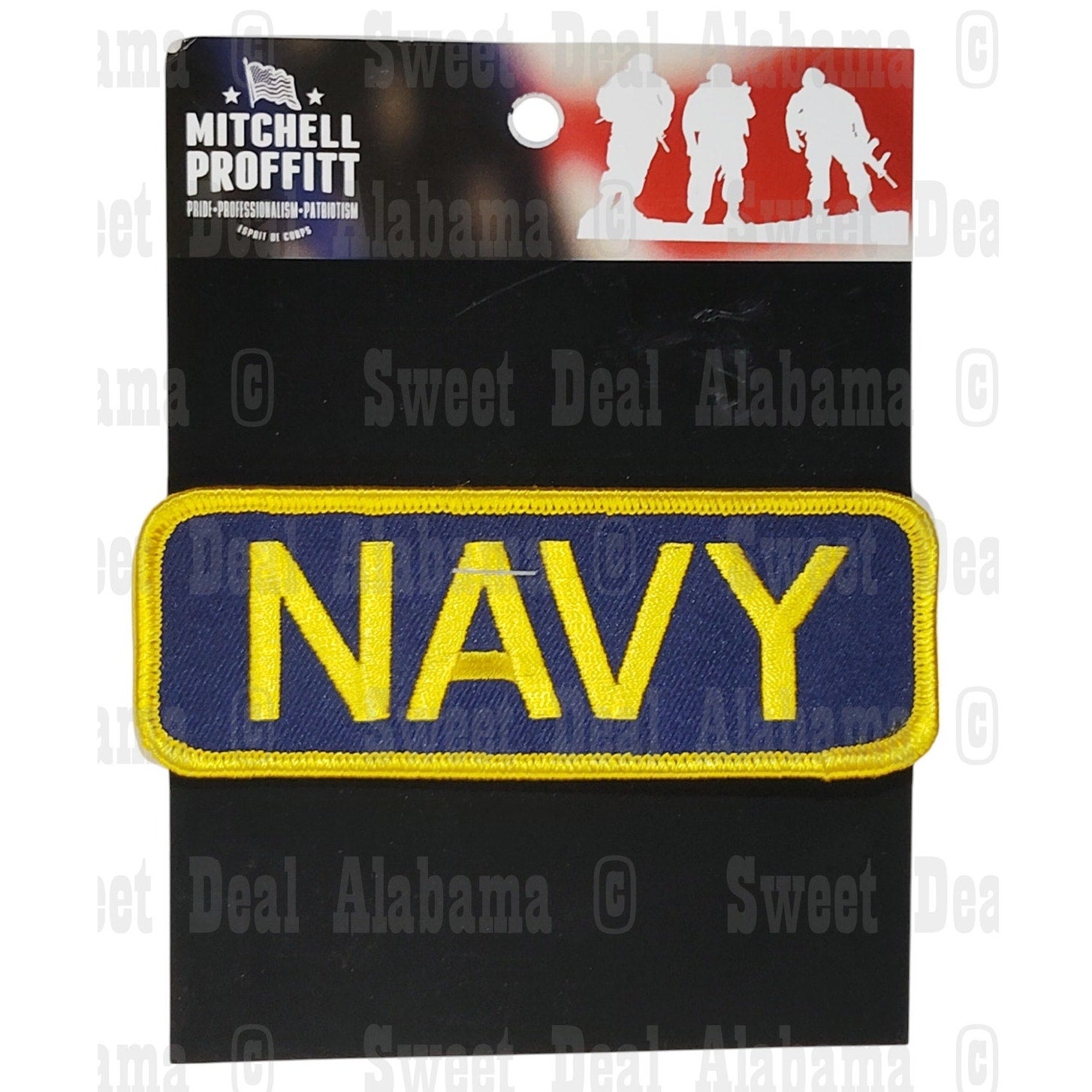 NAVY Patch – 4.5" x 1.625", Yellow on Blue, Military Pride Emblem