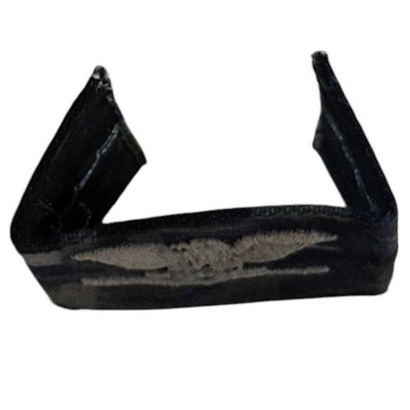 This NAVY NWU Type I Rank Tab for E4 Petty Officer Third Class is designed for wear on the parka, hat, or liner of the Navy Working Uniform Type I. Measuring 3 inches wide by 1-7/8 inches high, it features the blue digital camouflage pattern and embroidered insignia. Made in the USA to military specifications, it’s ideal for uniform restoration, reenactment, or display.