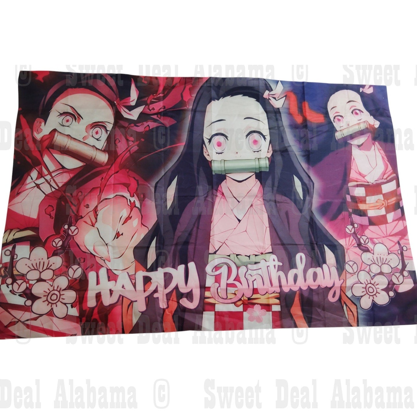 - Design: Floral background with Nezuko Kamado and “HAPPY Birthday” text in bold anime style