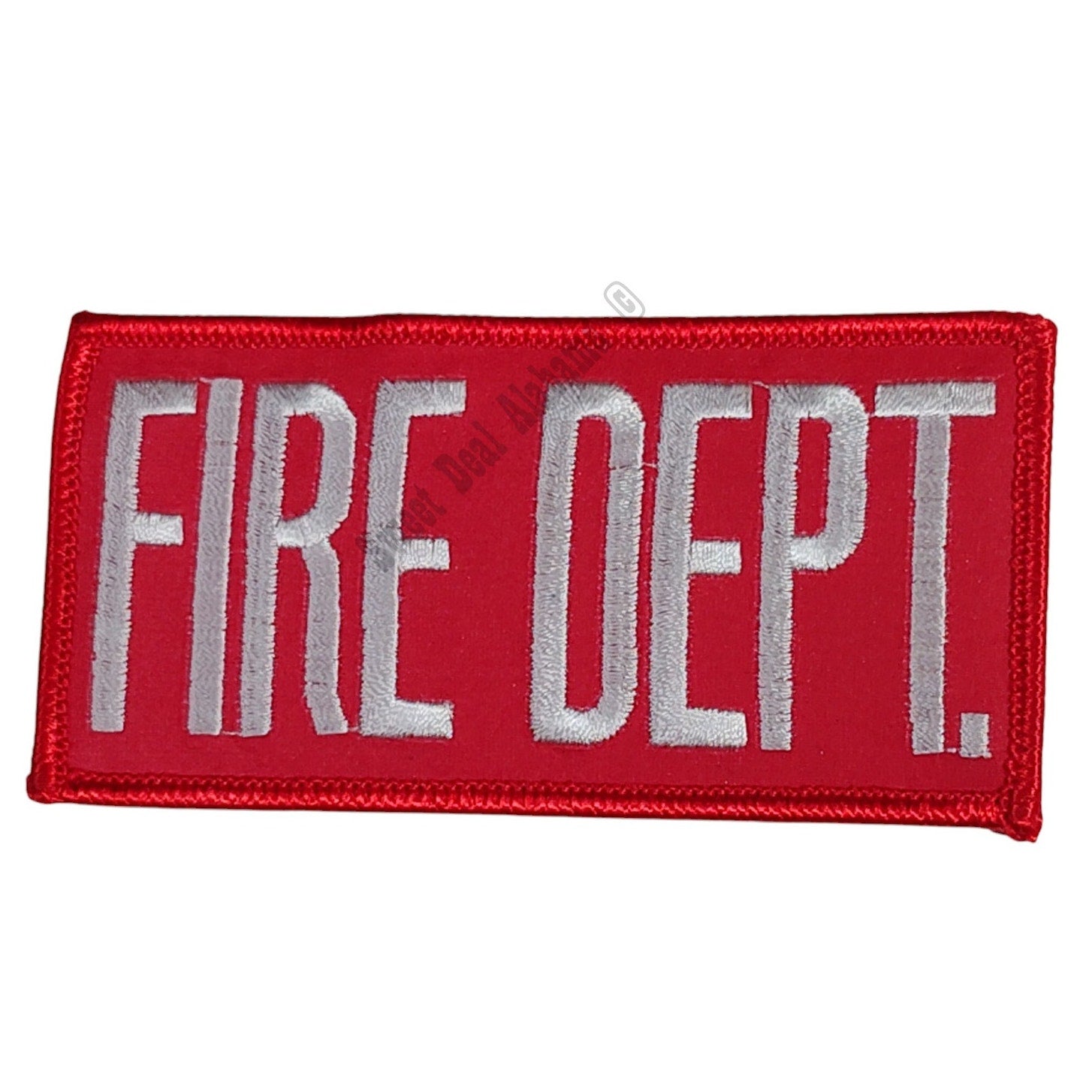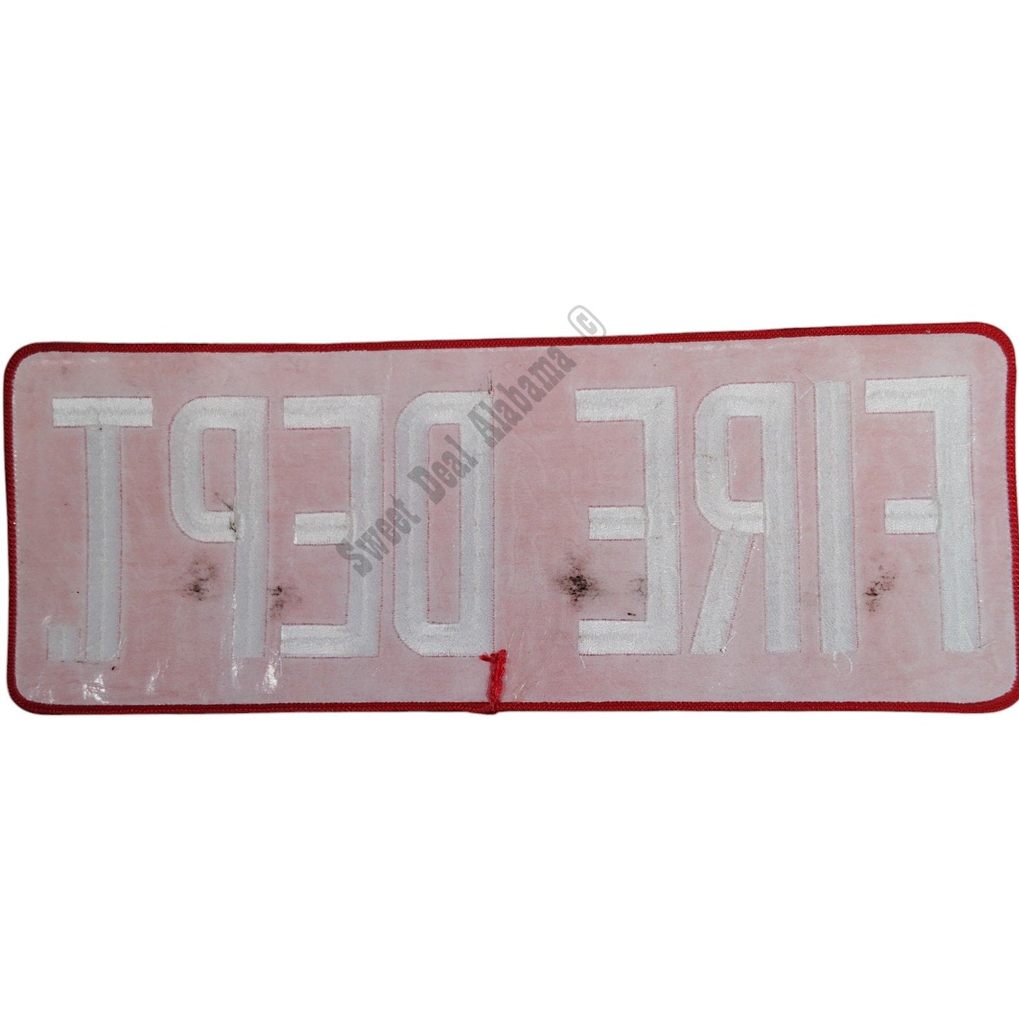 NOS, Fire Dept., White Text on Red, Iron or Sew-On Embroidered Patch, 4"W x 2"H