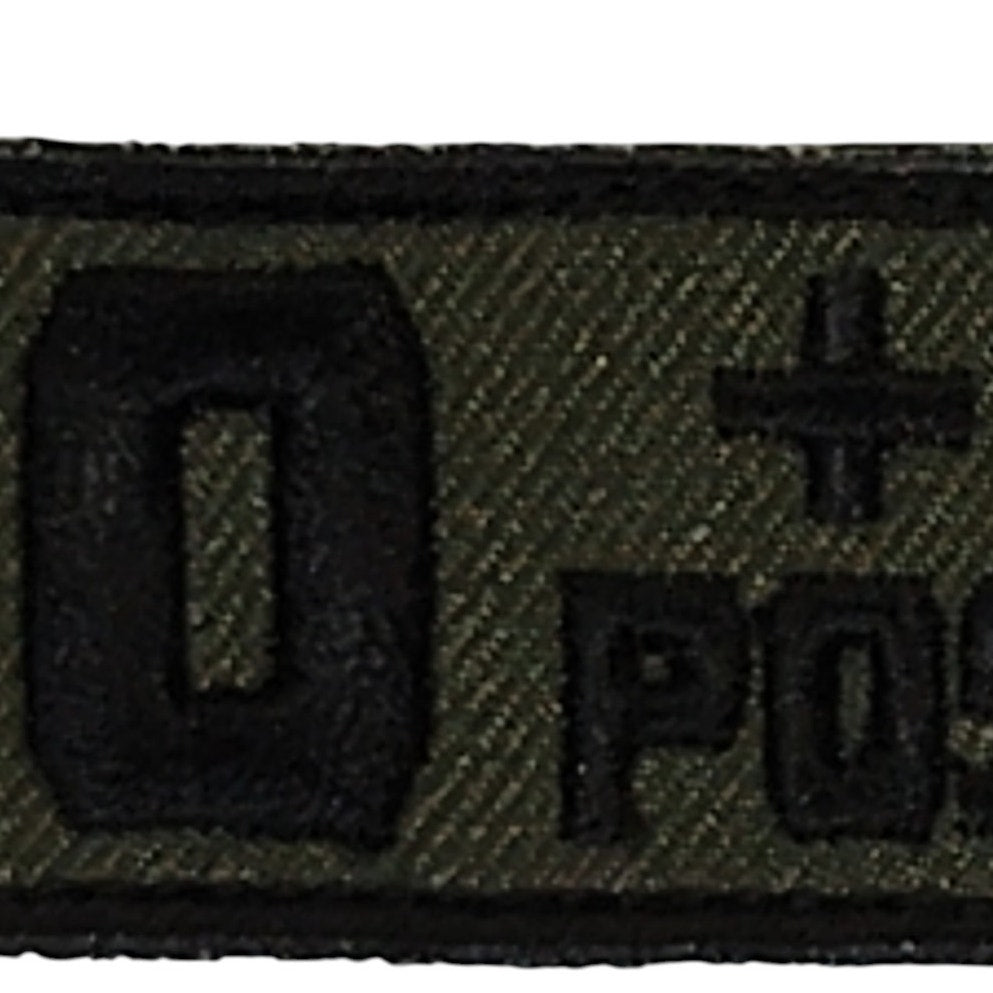 Tactical blood type patch embroidered with “O+ POS” in subdued black thread on olive green background. Features hook backing for easy attachment to uniforms, gear, or medical kits. Compact 2" x 1" size with rounded corners and reinforced stitching. Ideal for field identification and emergency response readiness.