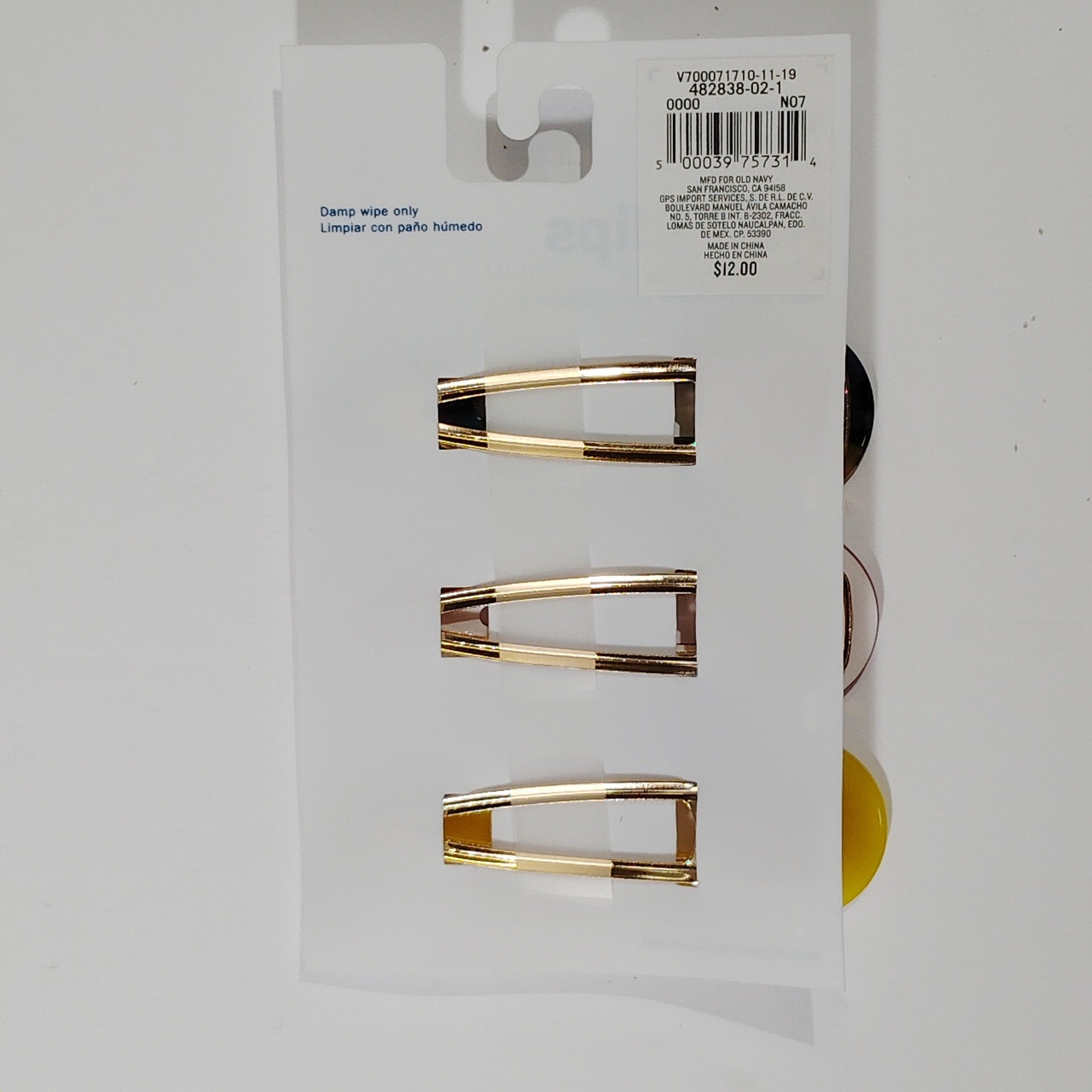 Old Navy Hair Clips – 2 Matching 3-Packs, Teardrop Style, tortoise, pink, yellow