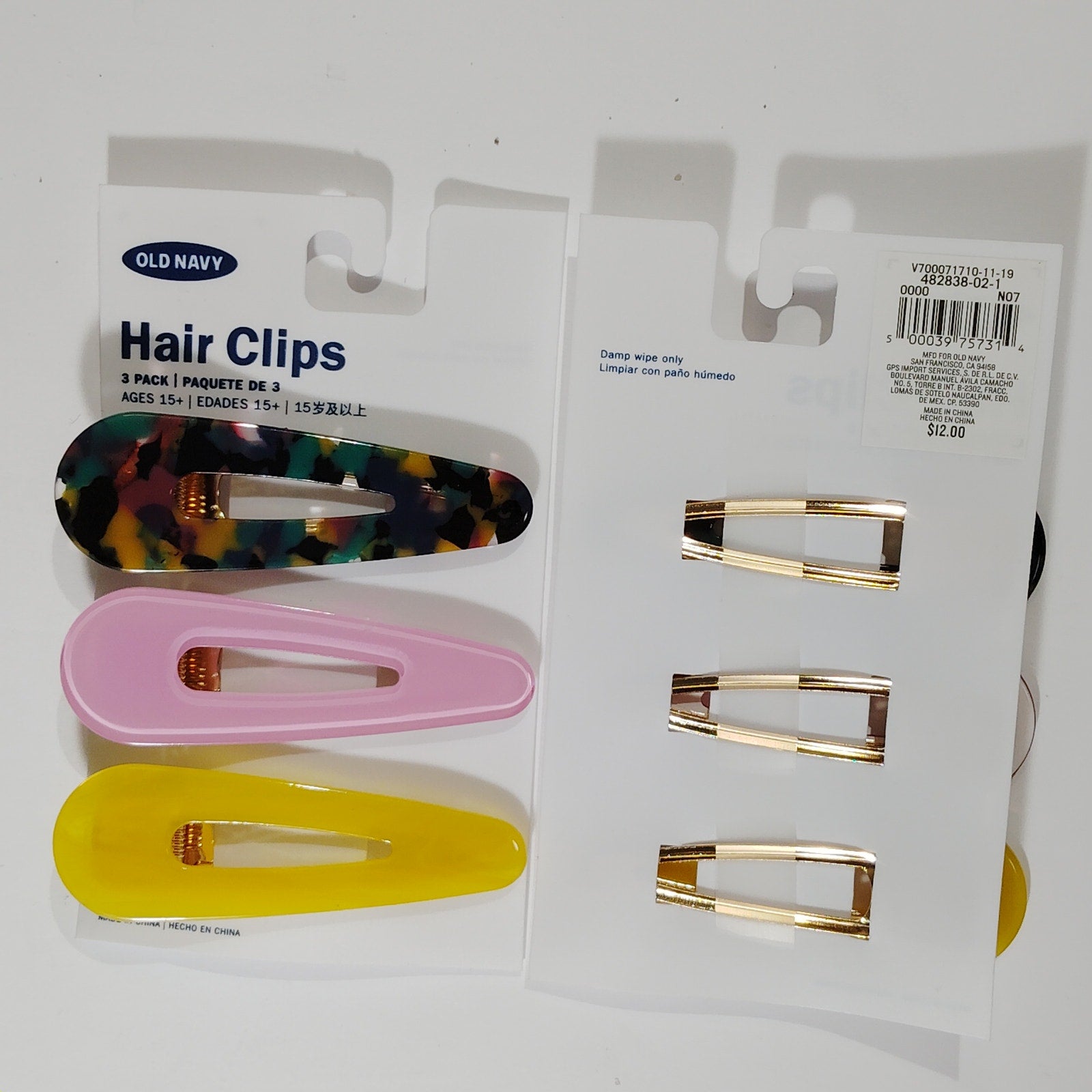 Add a splash of color and secure hold with these Old Navy Hair Clips, featuring two matching 3-packs for a total of six teardrop-shaped alligator clips. Each pack includes a mix of multicolor tortoiseshell, solid pink, and solid yellow finishes. Designed for ages 15+, these clips offer a strong grip and stylish accent for everyday wear, updos, or casual styling.
