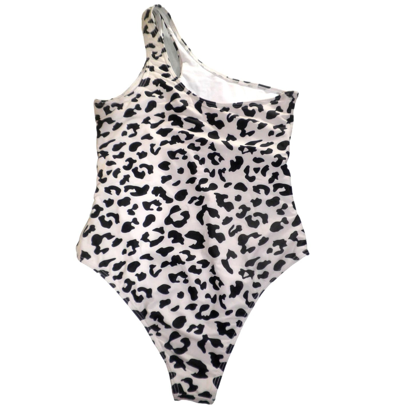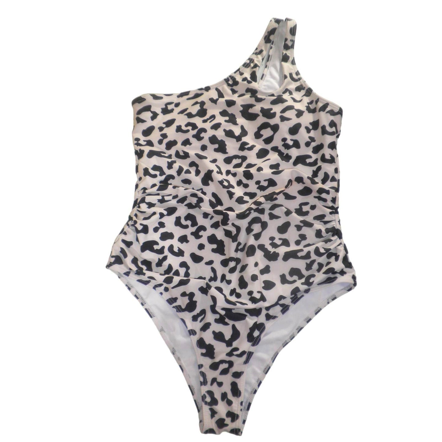 One Shoulder One Piece Ruched Swimsuit Tummy Control Full Coverage, Leopard, LRG