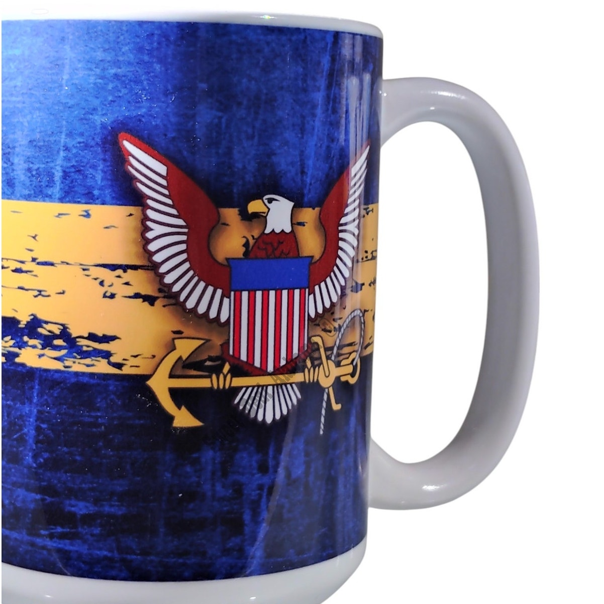 Orca Coatings Navy Veteran / Navy Emblem Ceramic Large Handled 12 Oz. Coffee Mug