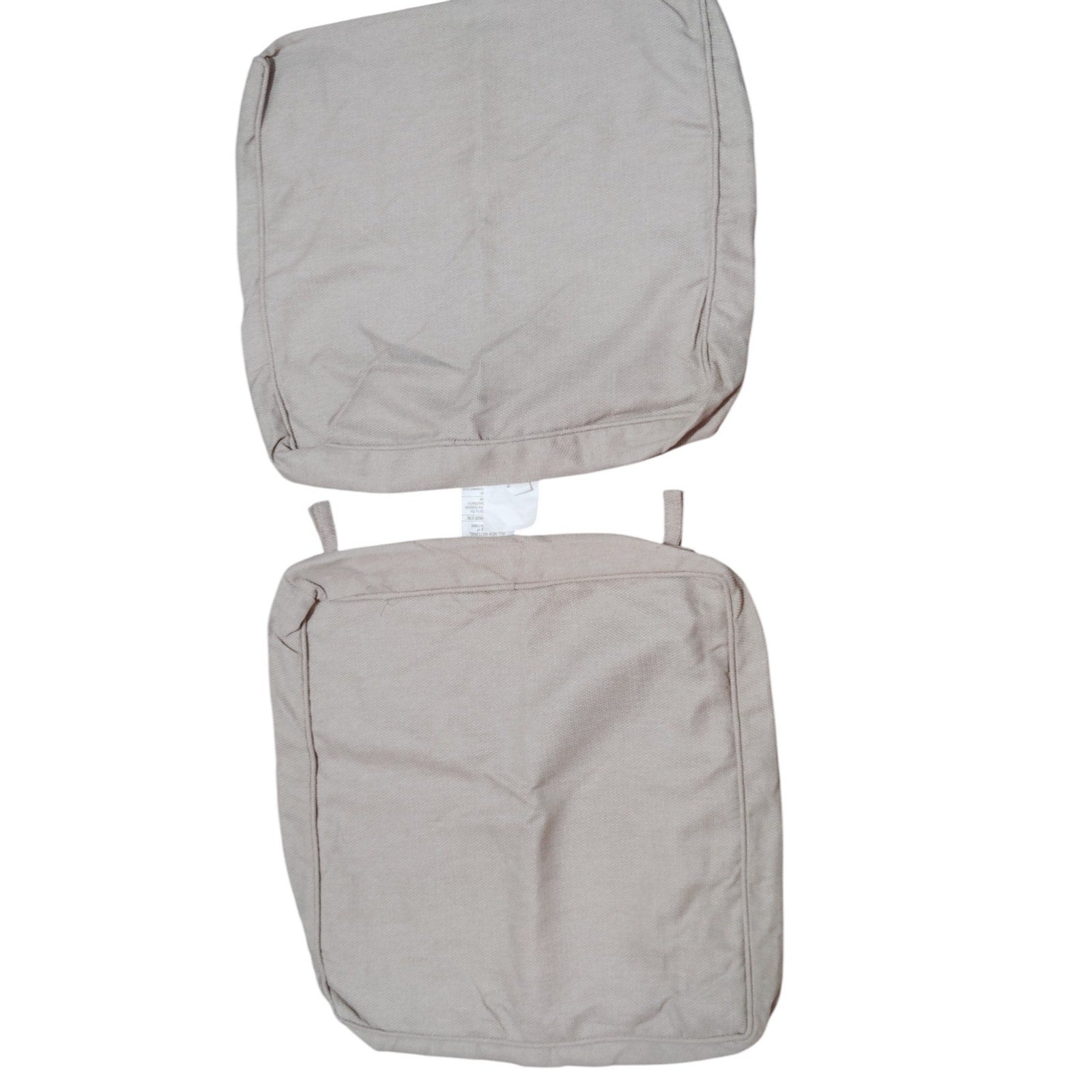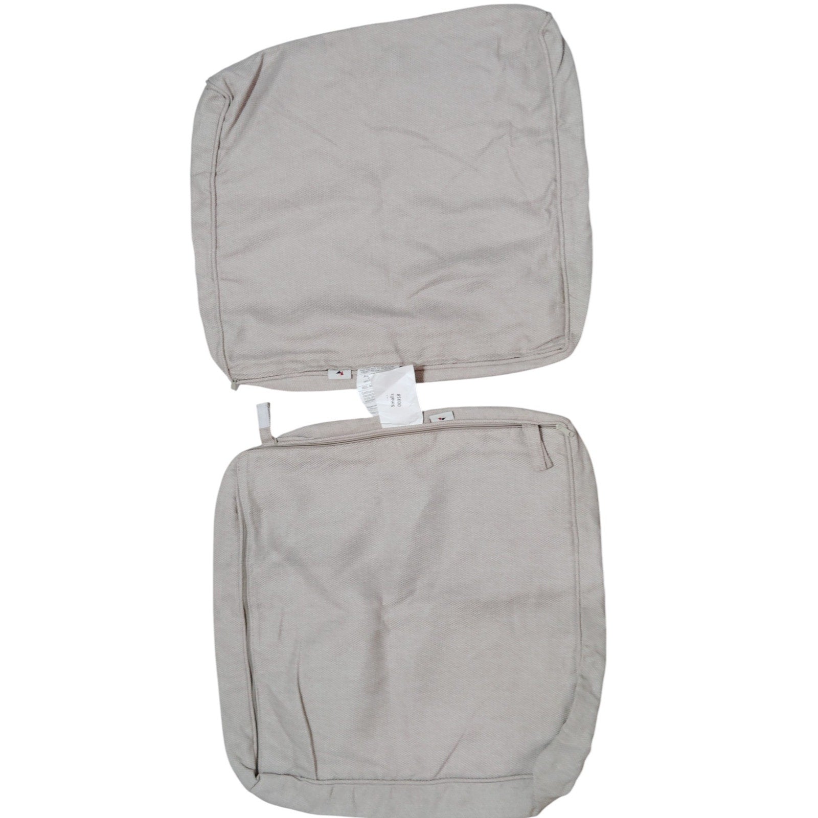 Two-piece cushion slipcover set in Taupe Beige, designed for outdoor seating. Measured flat at seams: