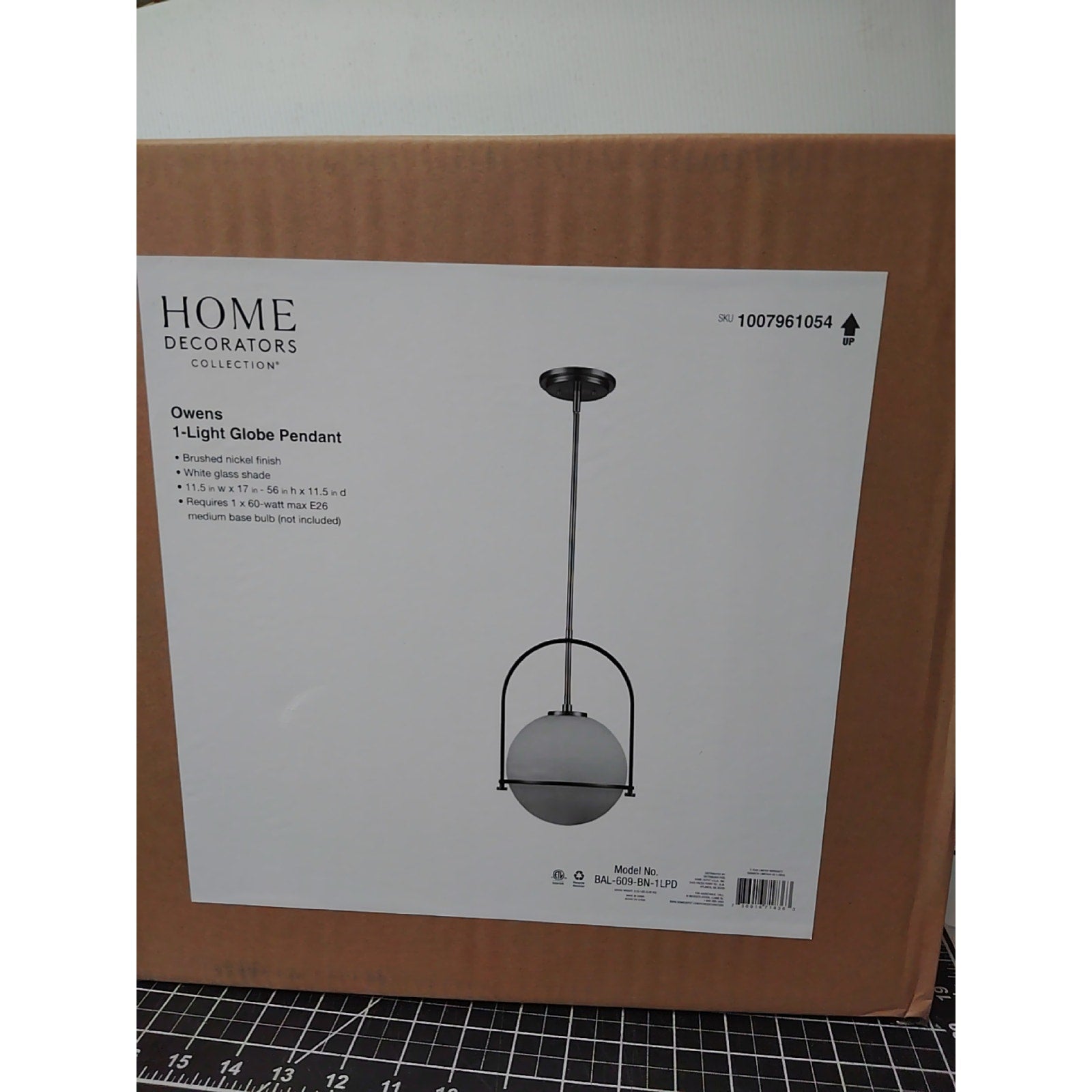 Owens 1-Light Brushed Nickel Globe Pendant Light Fixture with Frosted Glass Shade – Model BAL-609-BN-1LPD