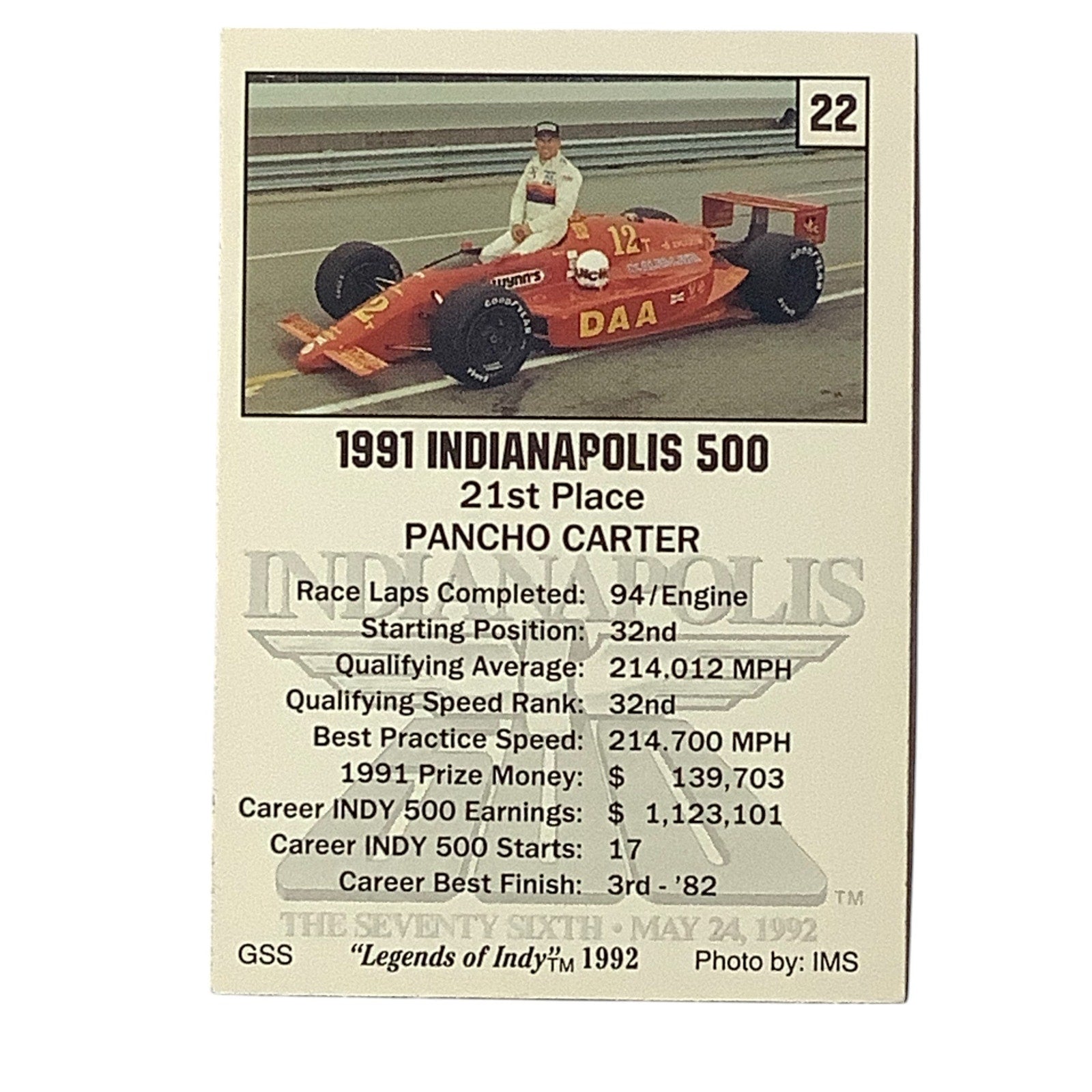 Pancho Carter 21st Place at Indy, 1991 Action, 1992 Legends of Indy Card 22, NM+