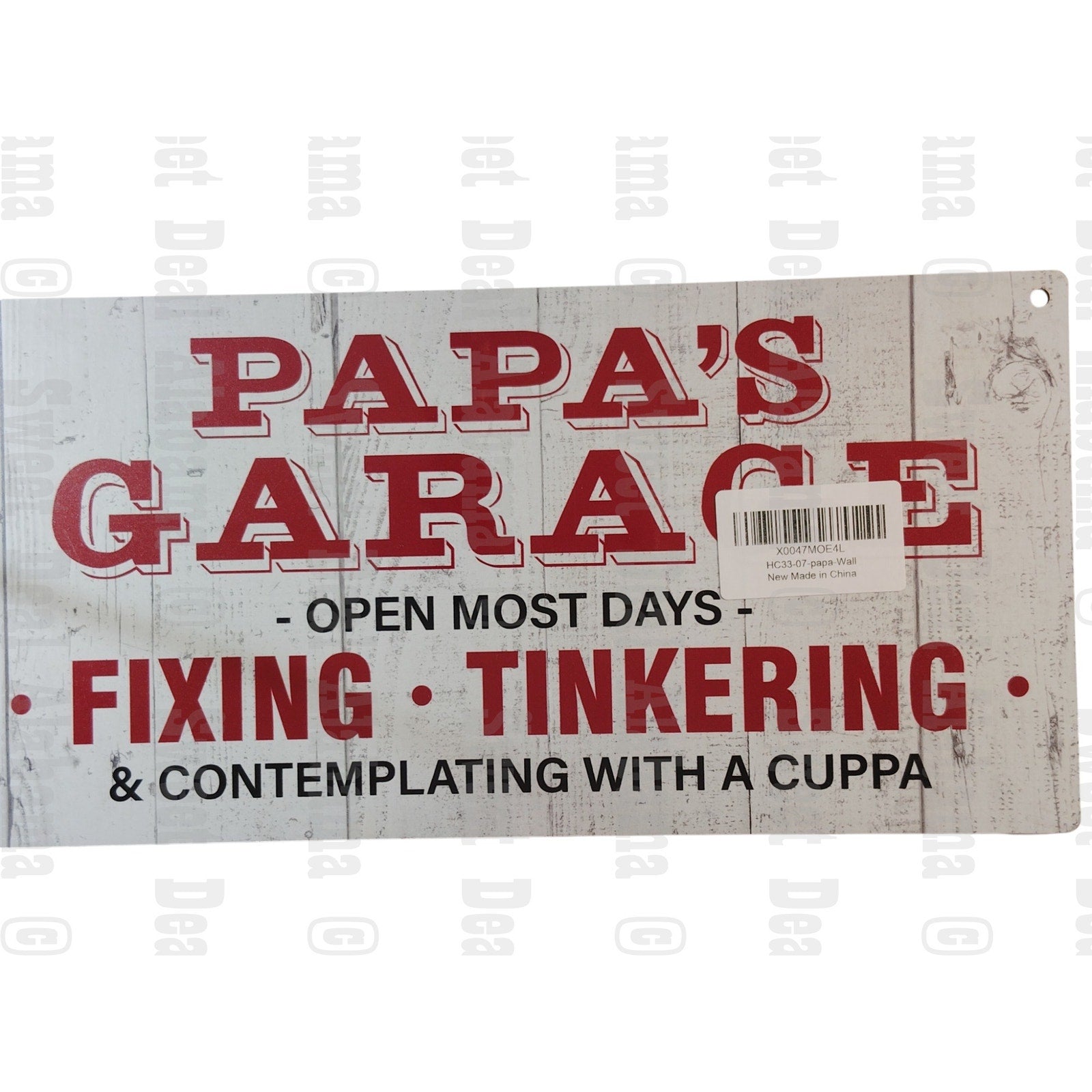 Crafted from durable wood with a weathered finish, it includes a sturdy rope for easy hanging. Ideal for garages, sheds, man caves, or anywhere Papa likes to tinker and relax.