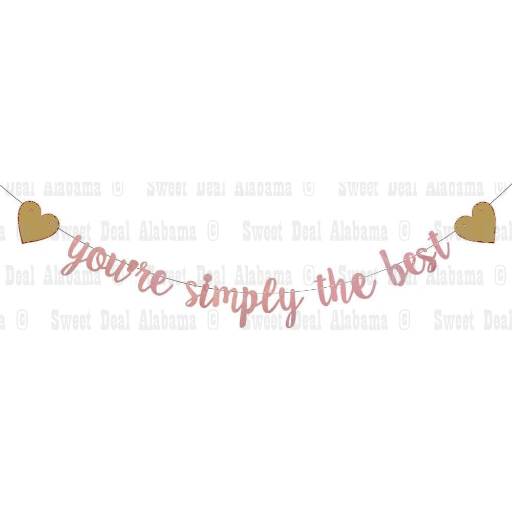 "you're simply the best" Party Banner – Rose/Gold Glitter, Pre-Strung