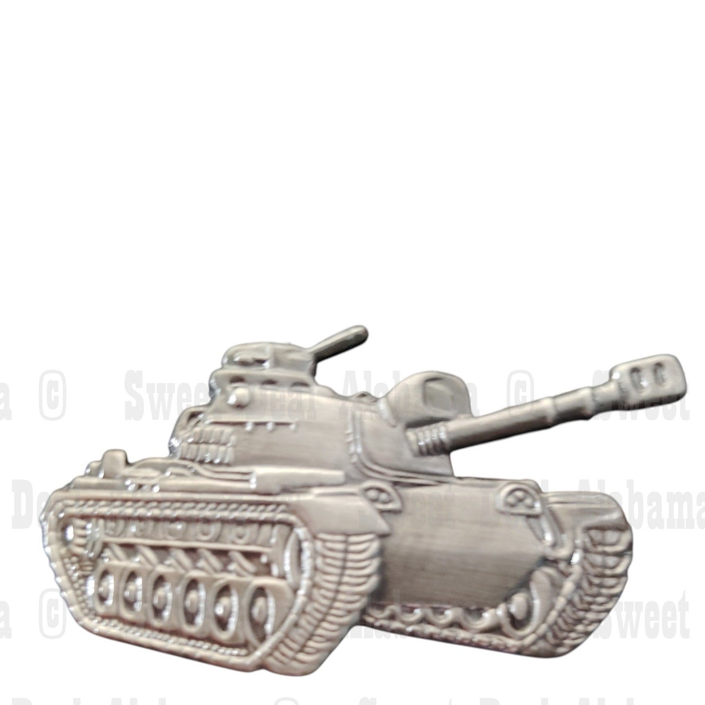 Celebrate Cold War armored might with this M48 Patton tank lapel pin—crafted in solid metal with a patinated silver-tone finish and secure butterfly clutch back: