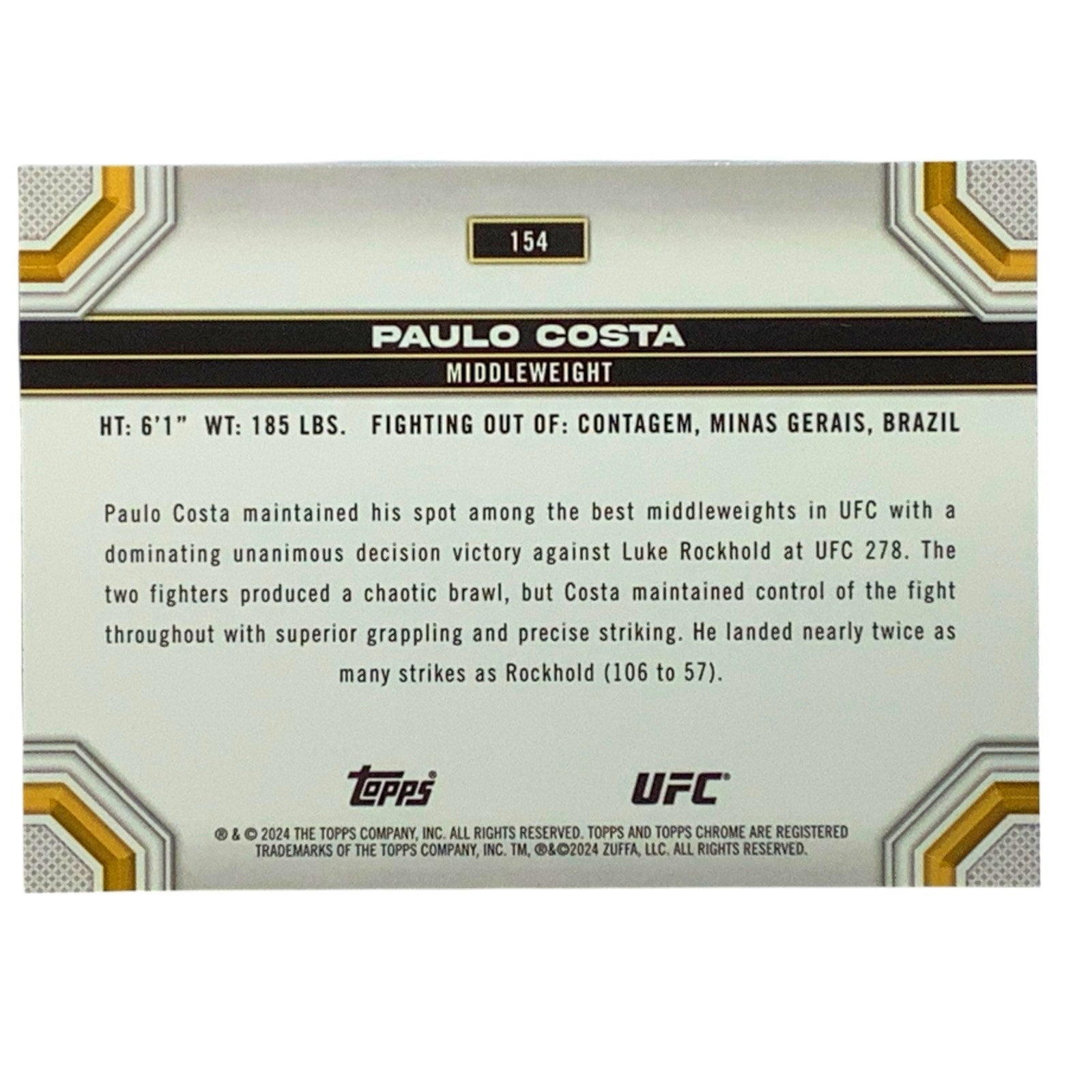 Paul Costa, UFC Middleweight, Card 154, 2024 Topps Chrome UFC, NM+