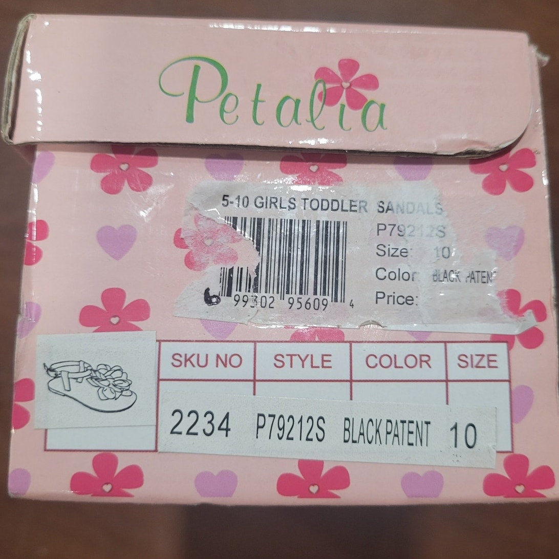Petalia Toddler Girls' Sandals, 10, Black Patent - Black Mesh Flower Sandal