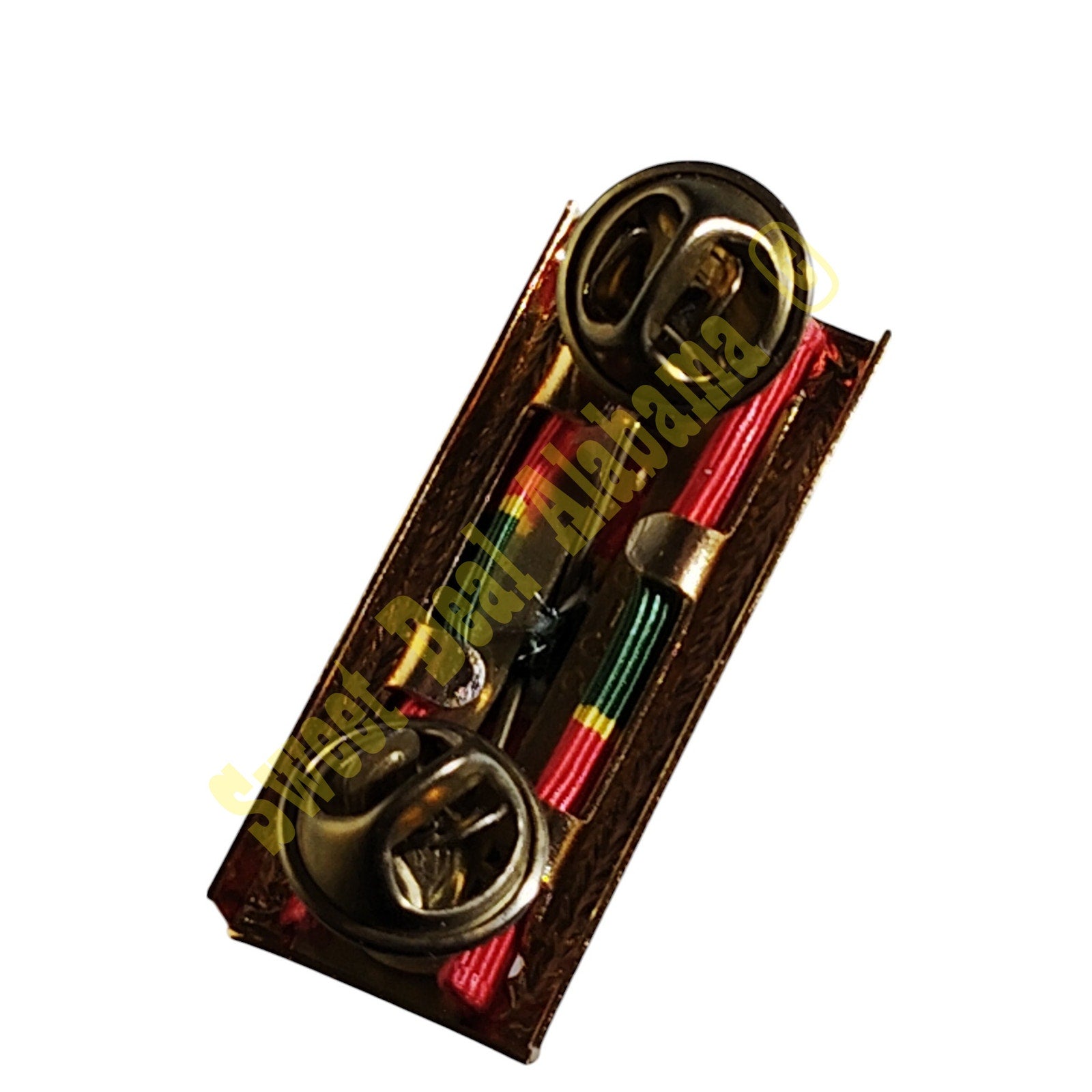 Attachment: Large gold frame - used on Air Force, Navy, Coast Guard and Marine Corps awards. With Metal Clutch Back Pin to be worn on Lapel or Hat.