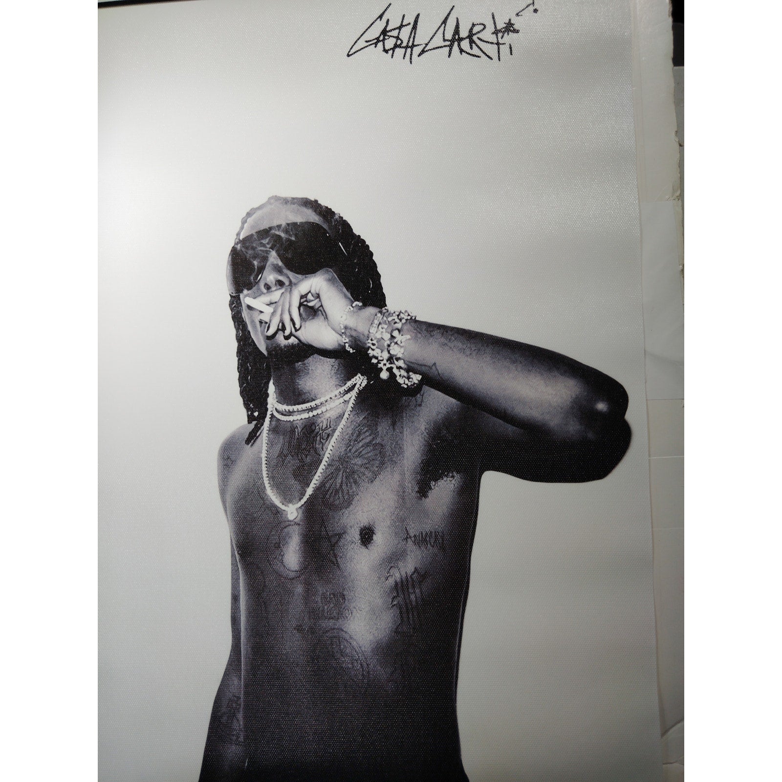 Bring bold hip hop style to your space with this Playboi Carti Album Cover Canvas Poster Print. Featuring a striking black-and-white portrait of the iconic rapper, this artwork captures the raw energy and aesthetic that defines modern rap culture. Perfect for fans of Carti, hip hop enthusiasts, or anyone looking to add an edgy statement piece to their wall décor. This 12x16" unframed canvas makes a standout addition to bedrooms, studios, music rooms, or living spaces.