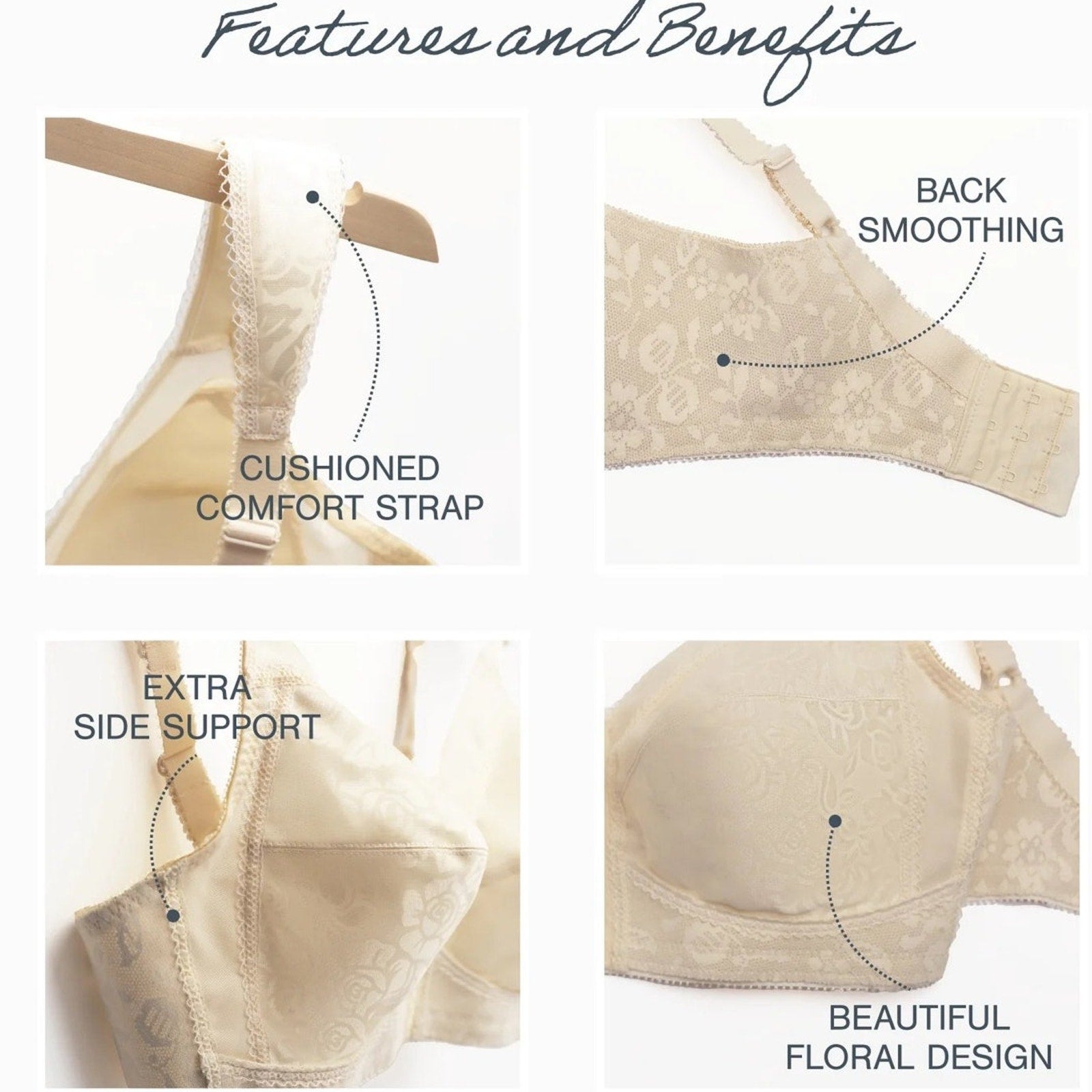 - Fit Notes: Natural shaping; reduced shoulder pressure; flexible stretch