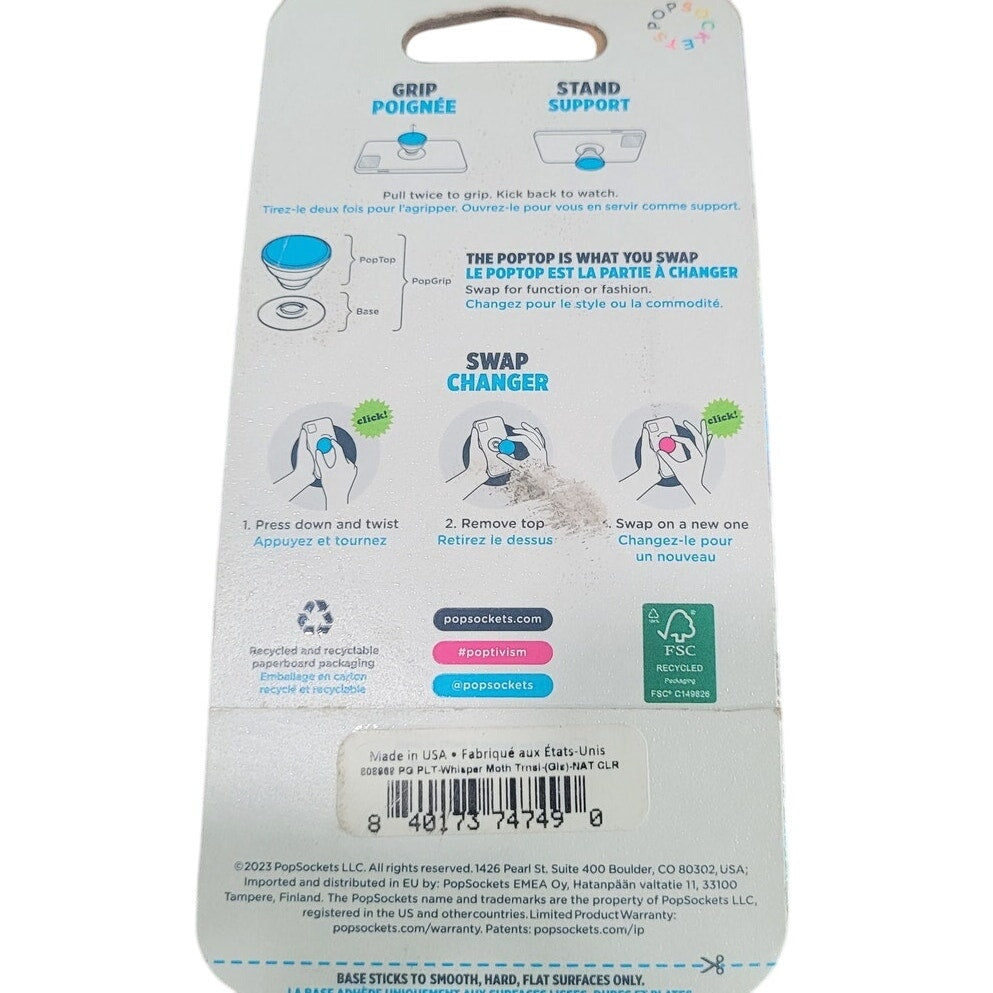 Eco-conscious PopSockets PopGrip from the PlantCore series featuring the “Whisper Moth” design. Made with plant-based materials, this adhesive grip offers secure handling and doubles as a phone stand. Compatible with most flat-backed phones and cases. UPC 840173747490. A nature-inspired accessory with sustainable flair.
