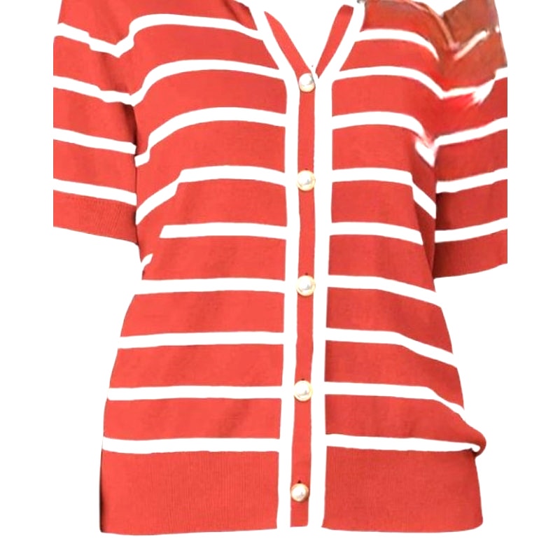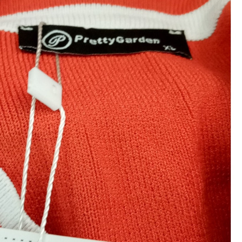 Prettygarden S/S Knit Ribbed Button Down Sweater Top, Rust Red, XL (16-18)