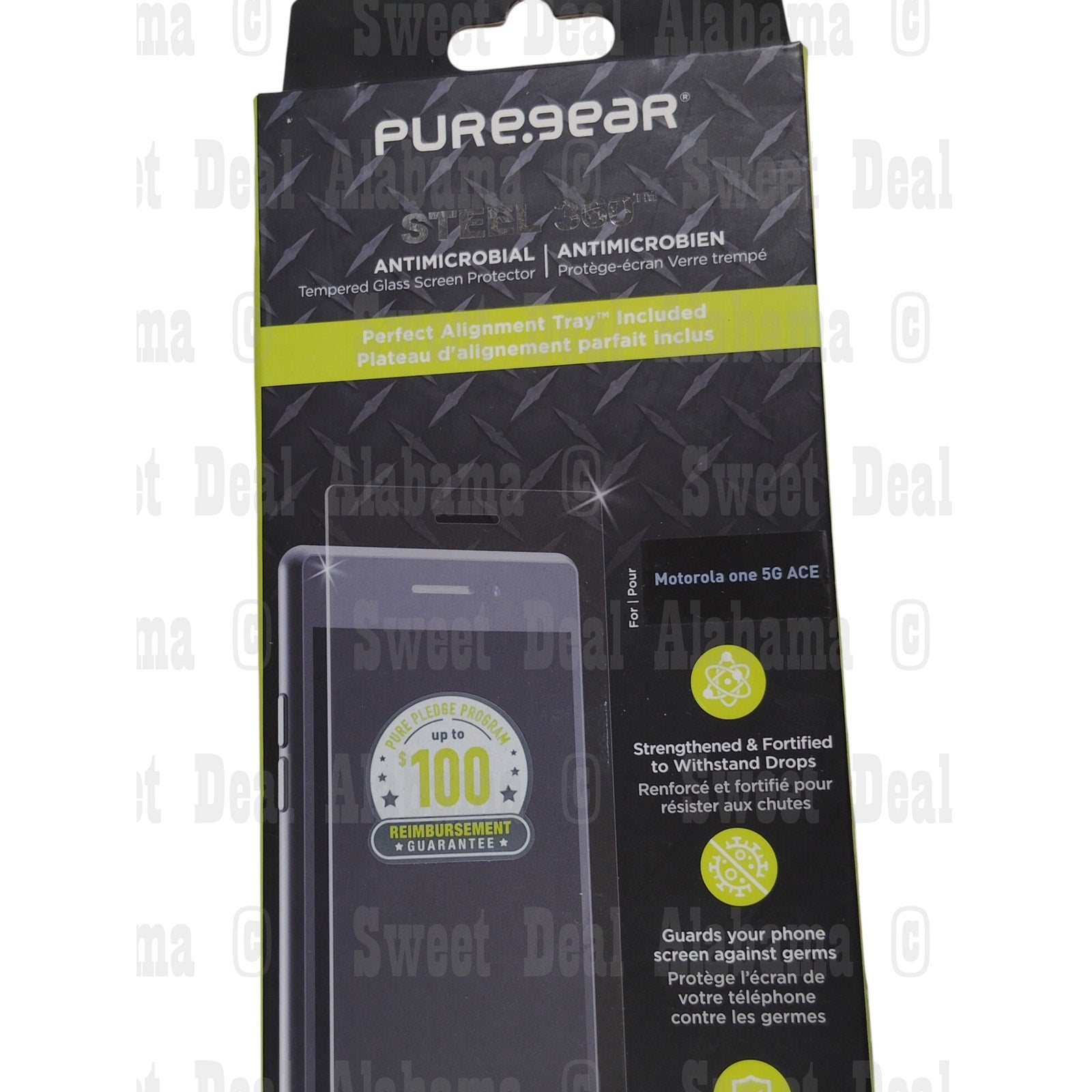 The PureGear Steel 360 Tempered Glass screen protector for the Motorola One 5G Ace offers scratch resistance, impact protection, and a bubble-free installation thanks to its Perfect Alignment Tray™.